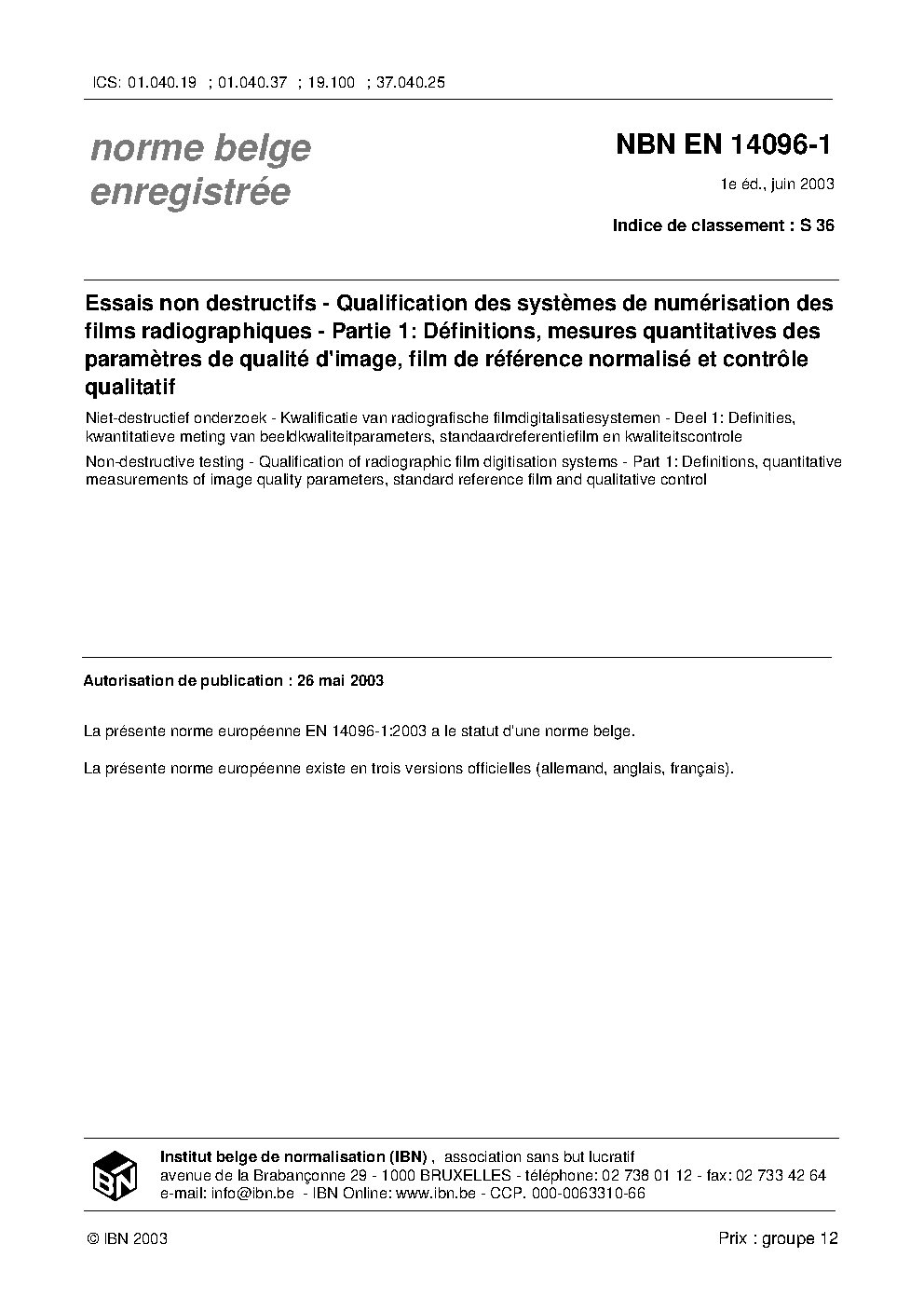 | Publisher | Bureau de Normalisation Belge (NBN) |