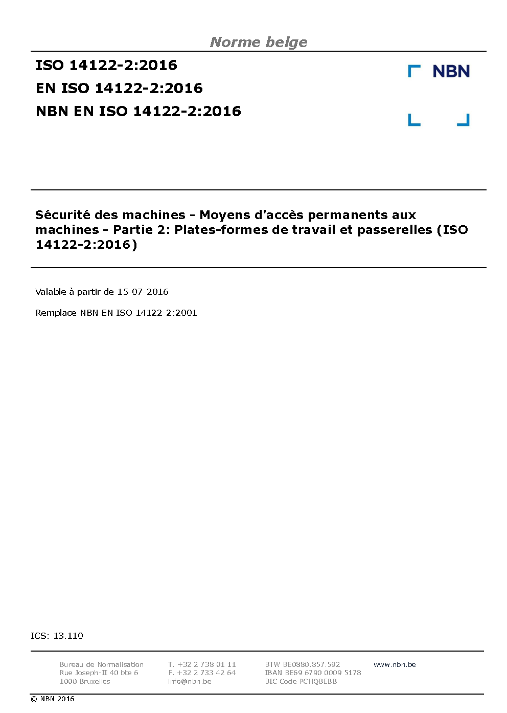 NBN EN ISO 14122-2:2001
