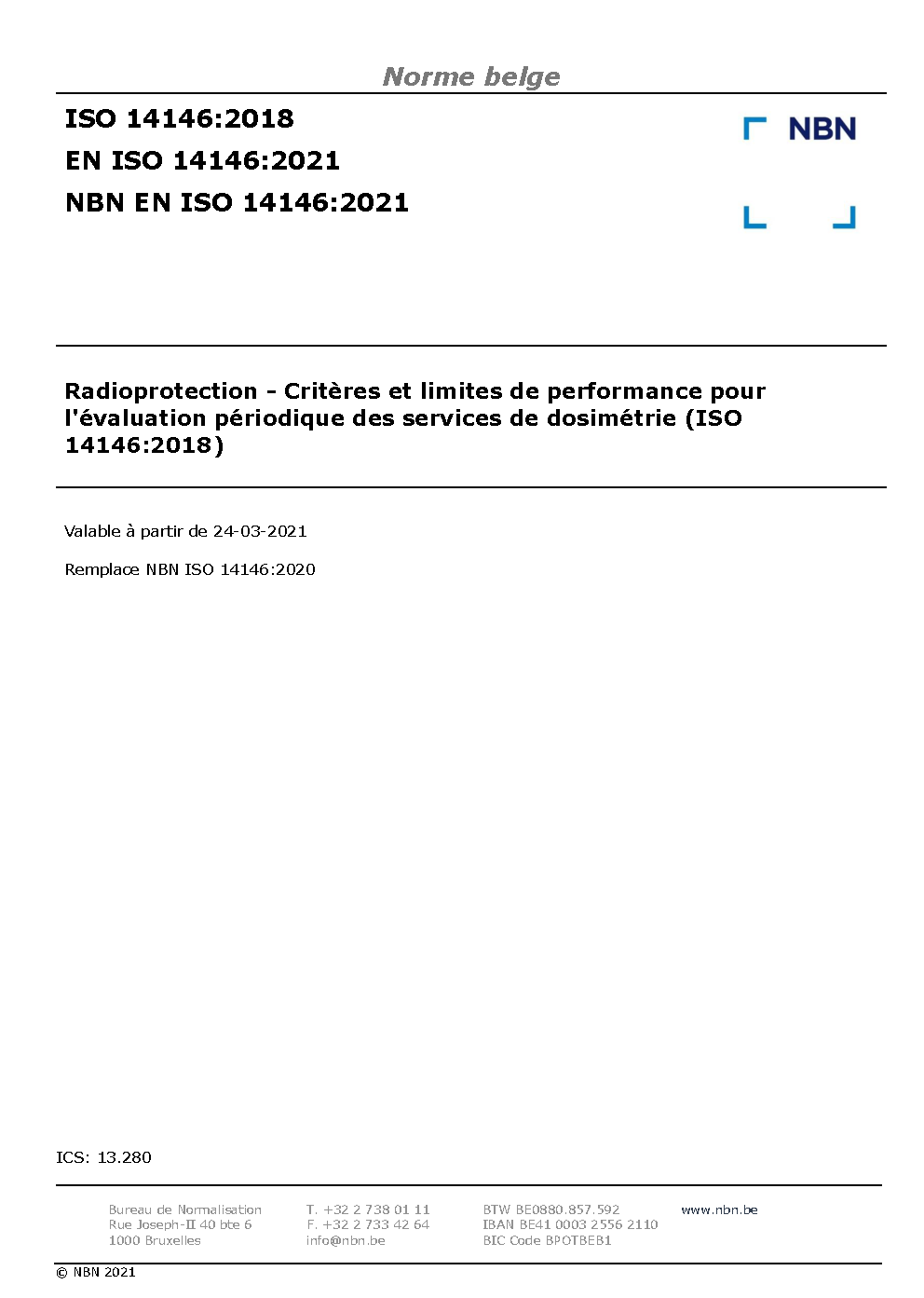 | Publisher | Bureau de Normalisation Belge (NBN) |