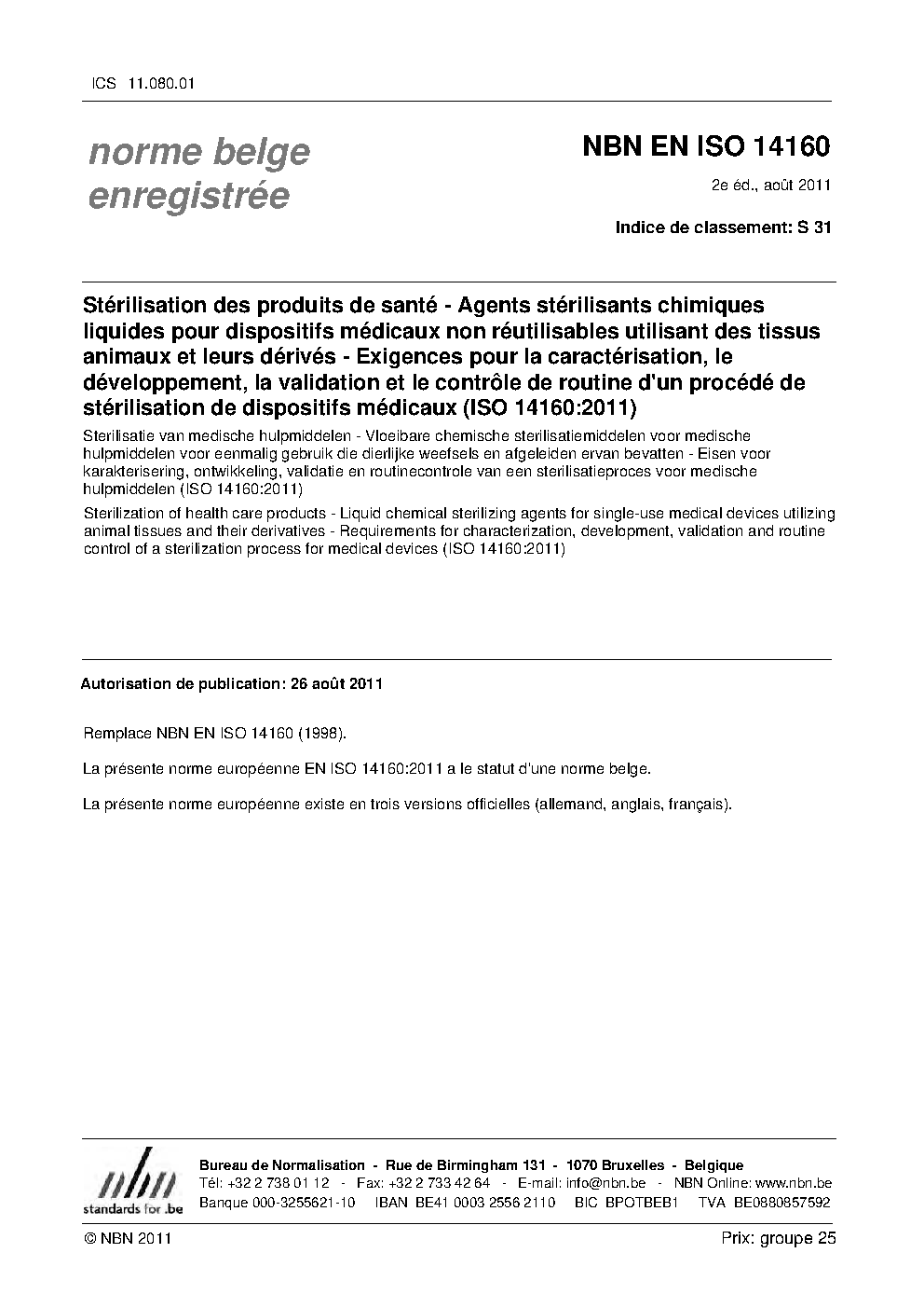 | Publisher | Bureau de Normalisation Belge (NBN) |