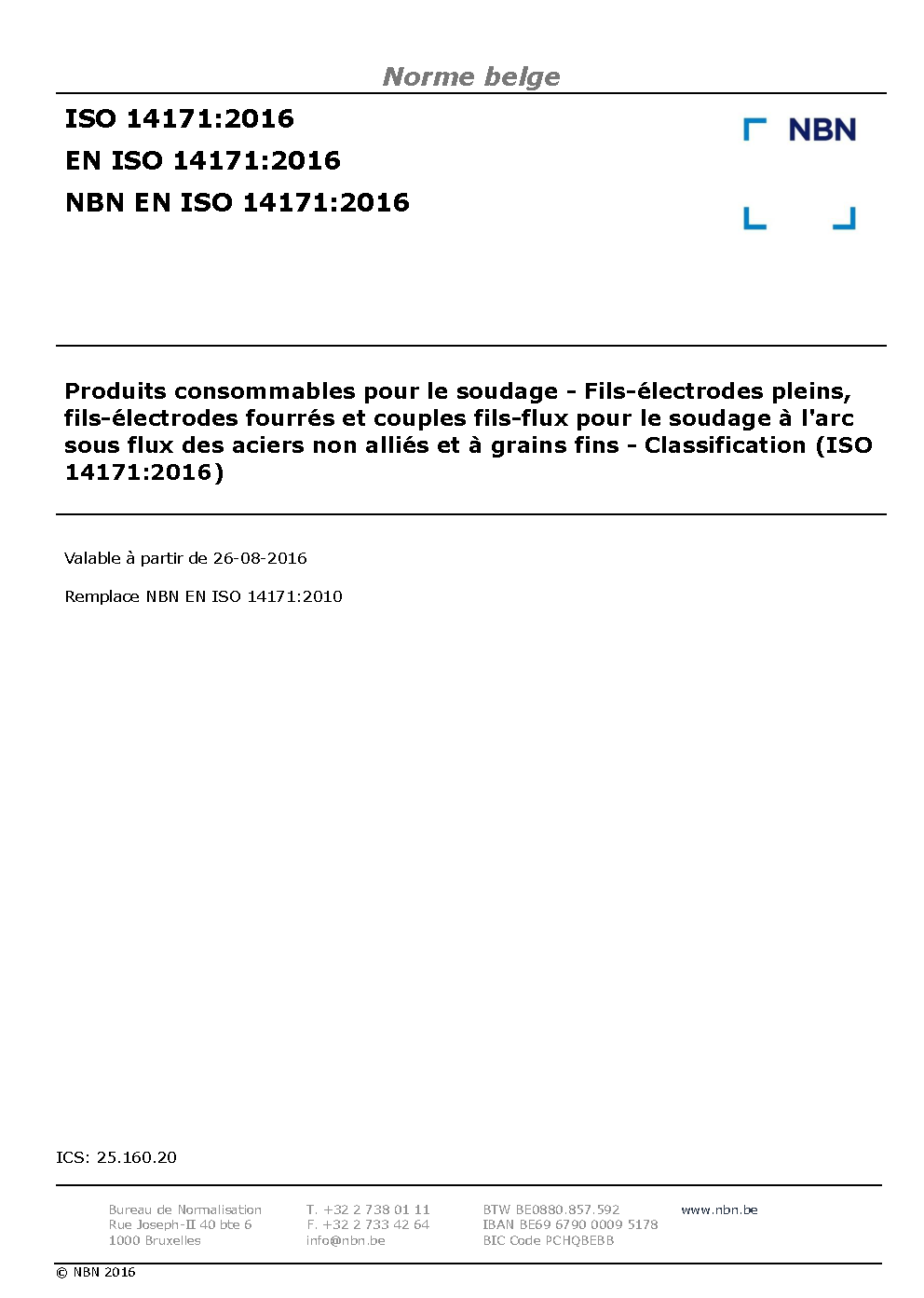 | Publisher | Bureau de Normalisation Belge (NBN) |