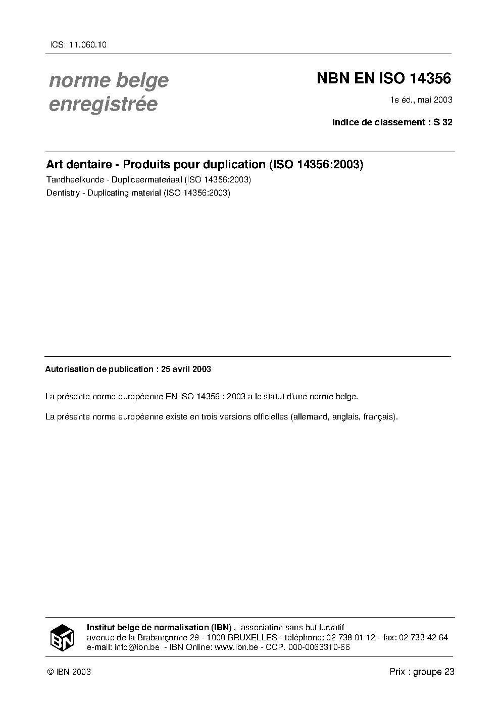 | Publisher | Bureau de Normalisation Belge (NBN) |