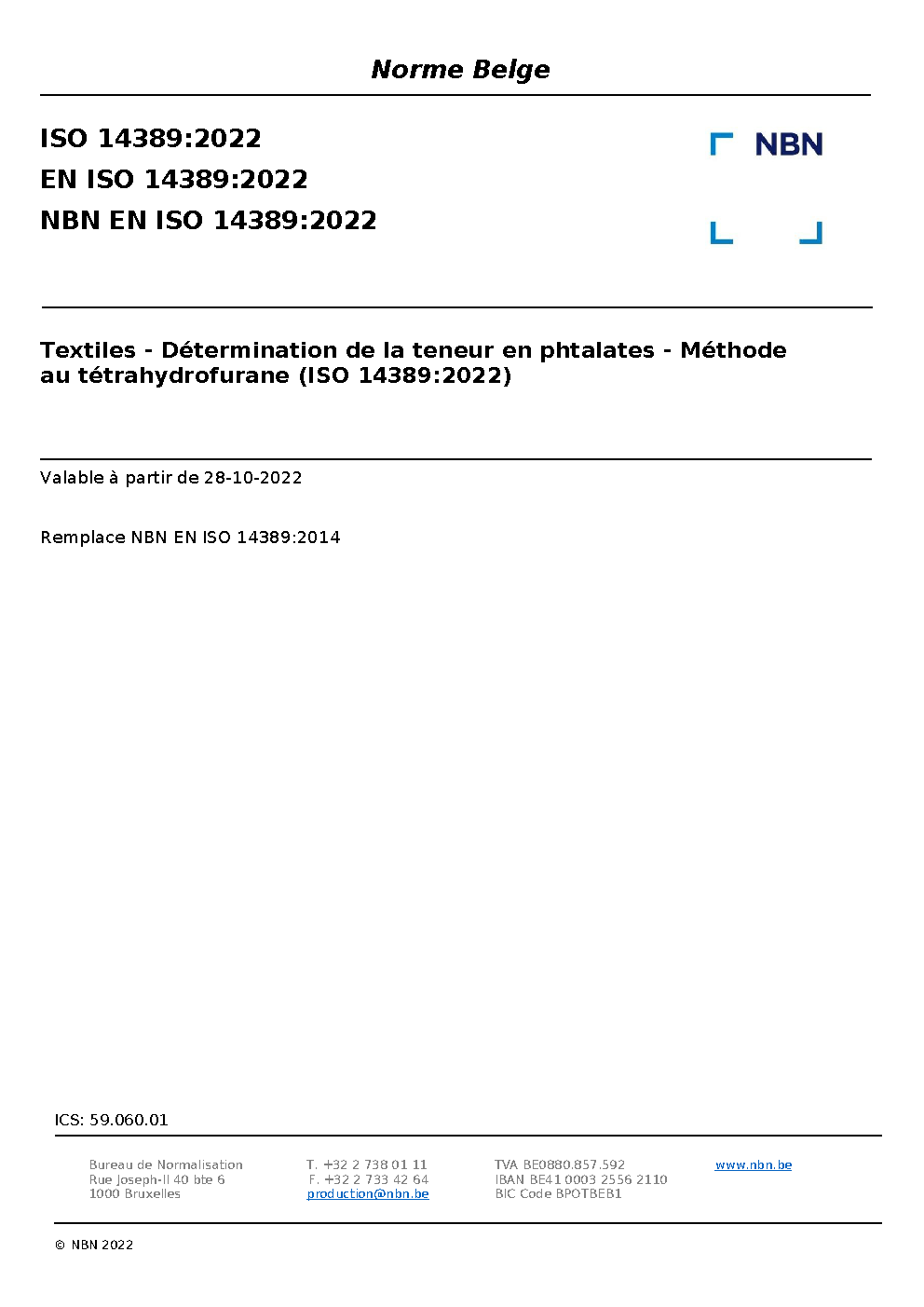 Textiles - Determination of the phthalate content - Tetrahydrofuran method (ISO 14389:2022)