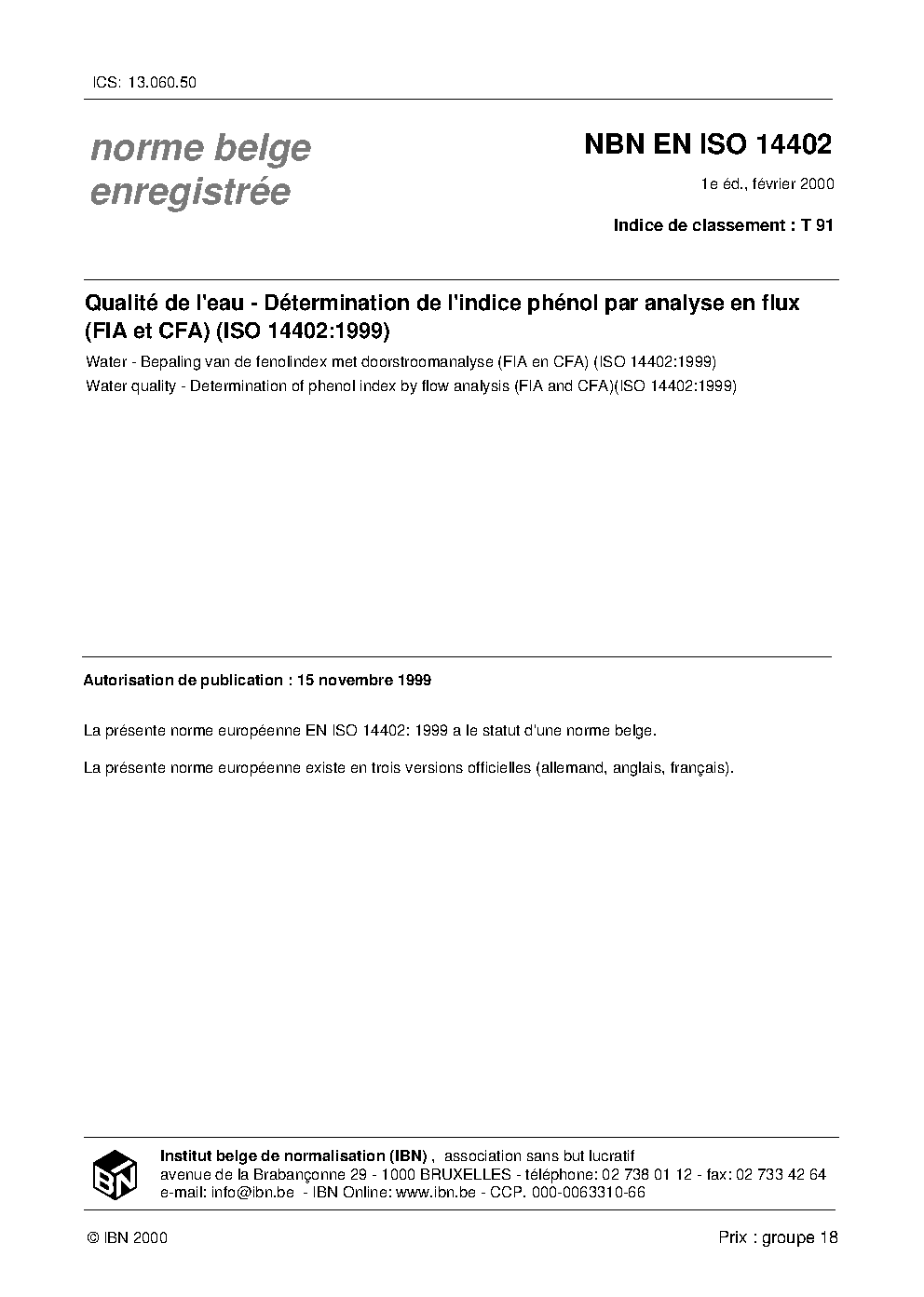 | Publisher | Bureau de Normalisation Belge (NBN) |