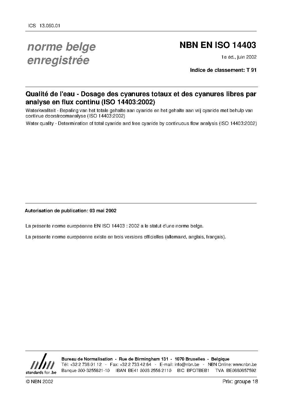 | Publisher | Bureau de Normalisation Belge (NBN) |
