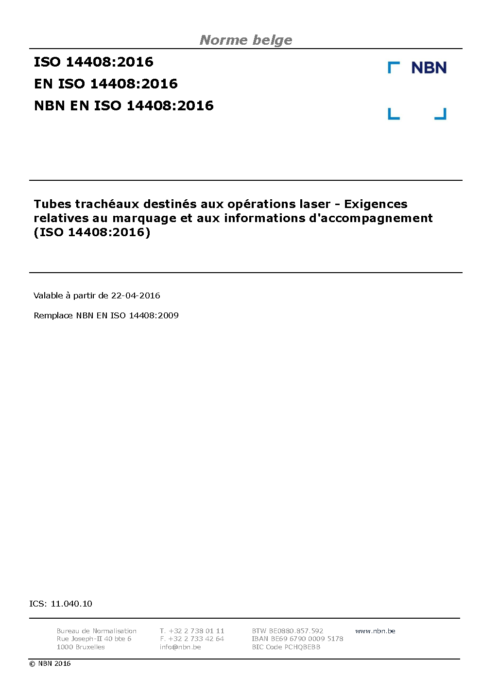 | Publisher | Bureau de Normalisation Belge (NBN) |