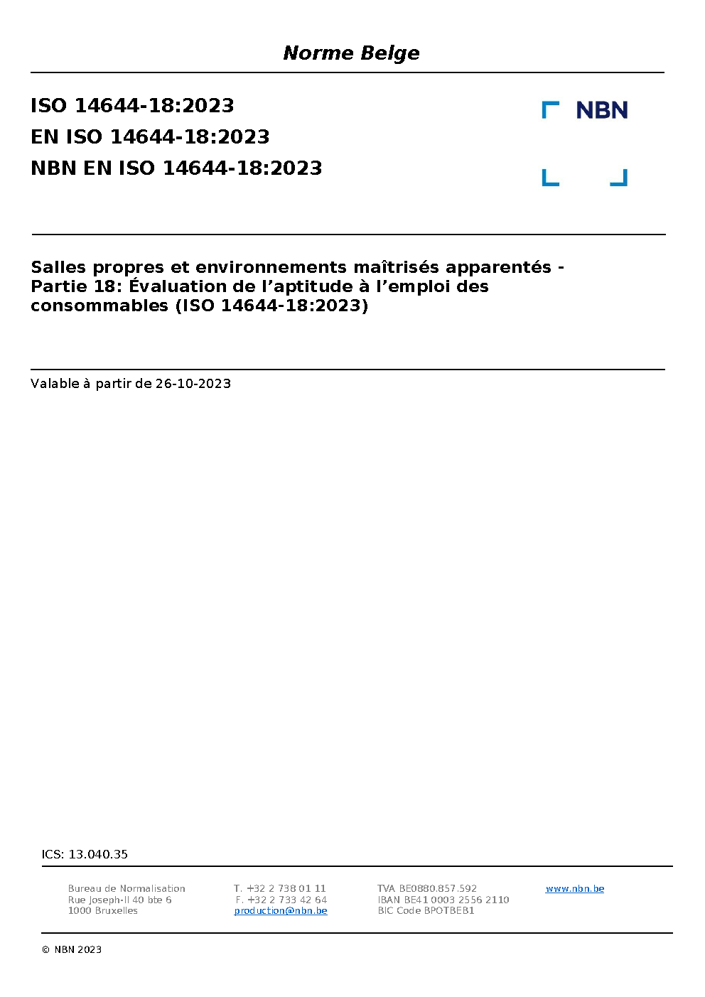 Cleanrooms and associated controlled environments - Part 18: Assessment of suitability of consumables (ISO 14644-18:2023)