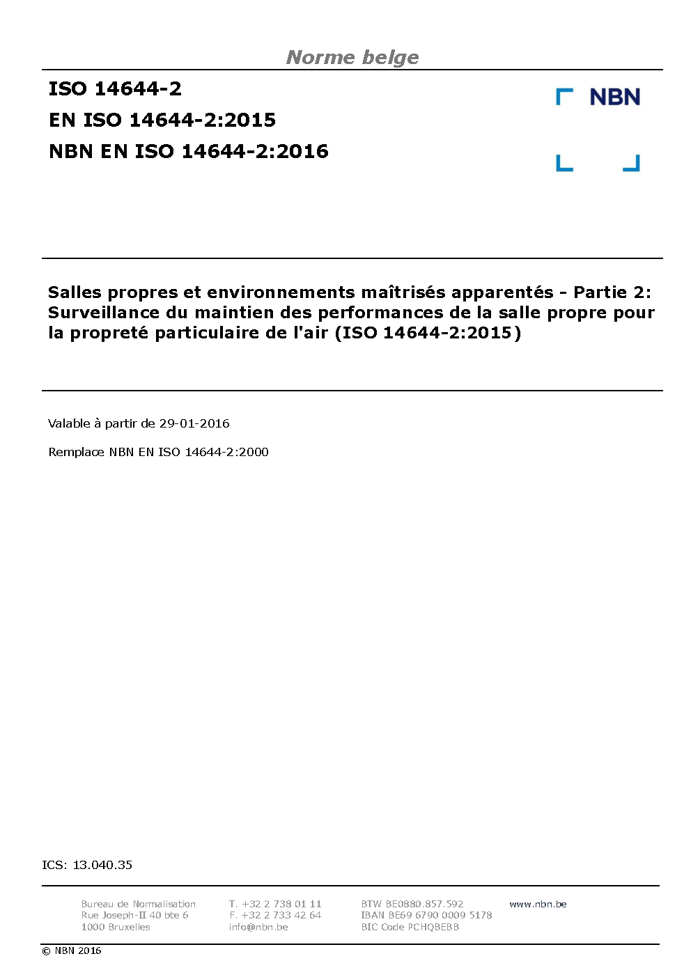 NBN EN ISO 14644-2:2016