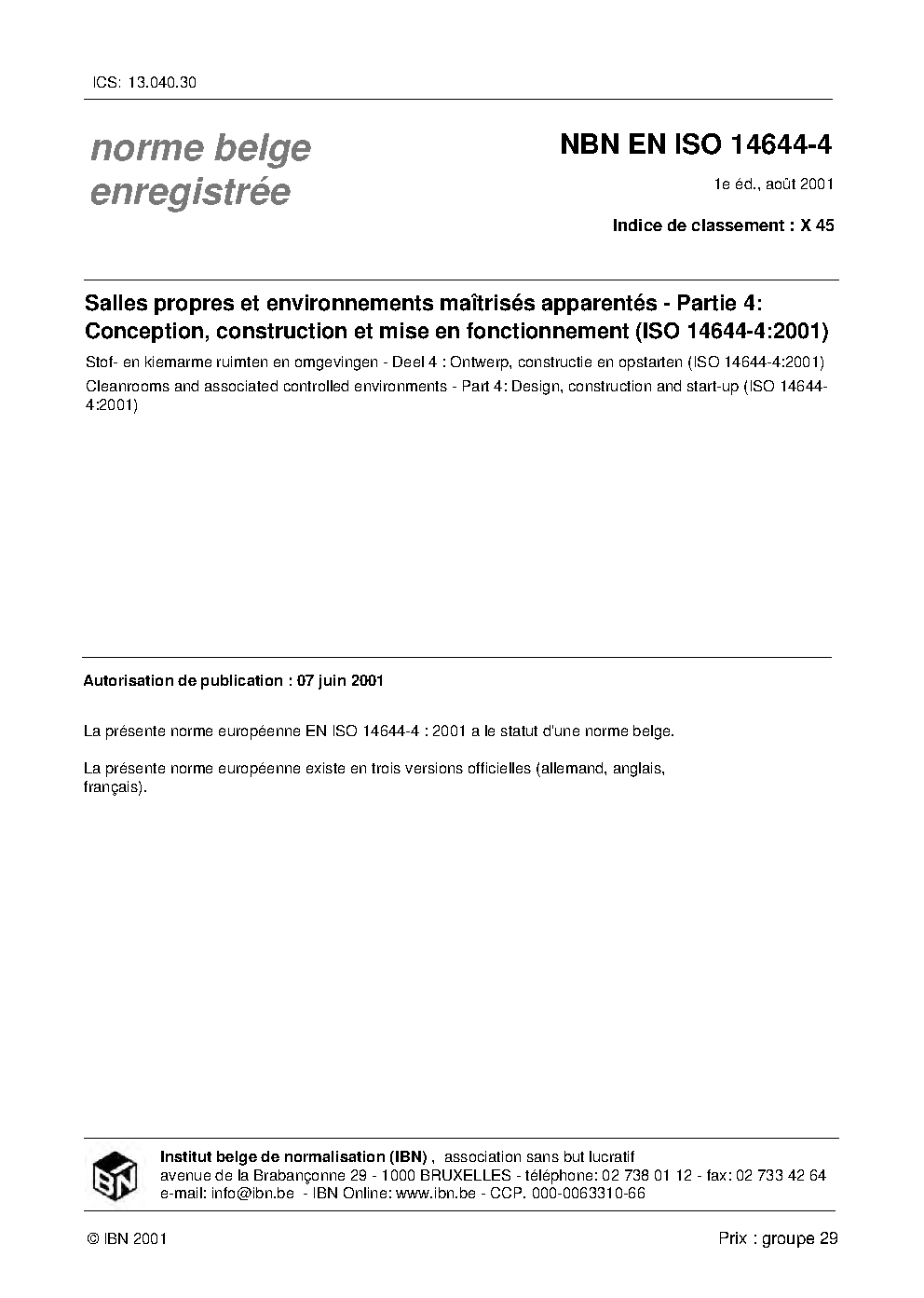 | Publisher | Bureau de Normalisation Belge (NBN) |
