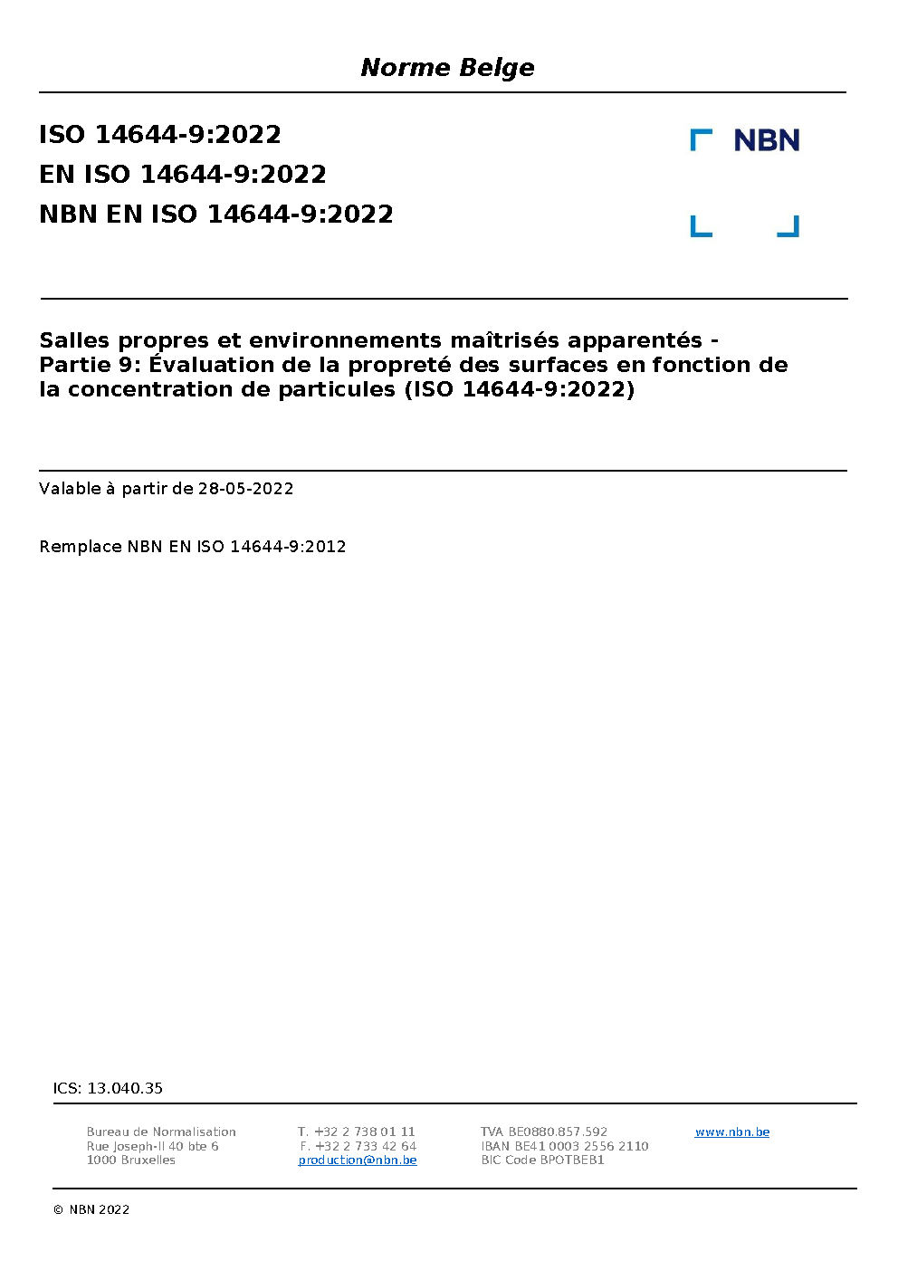 NBN EN ISO 14644-9:2022