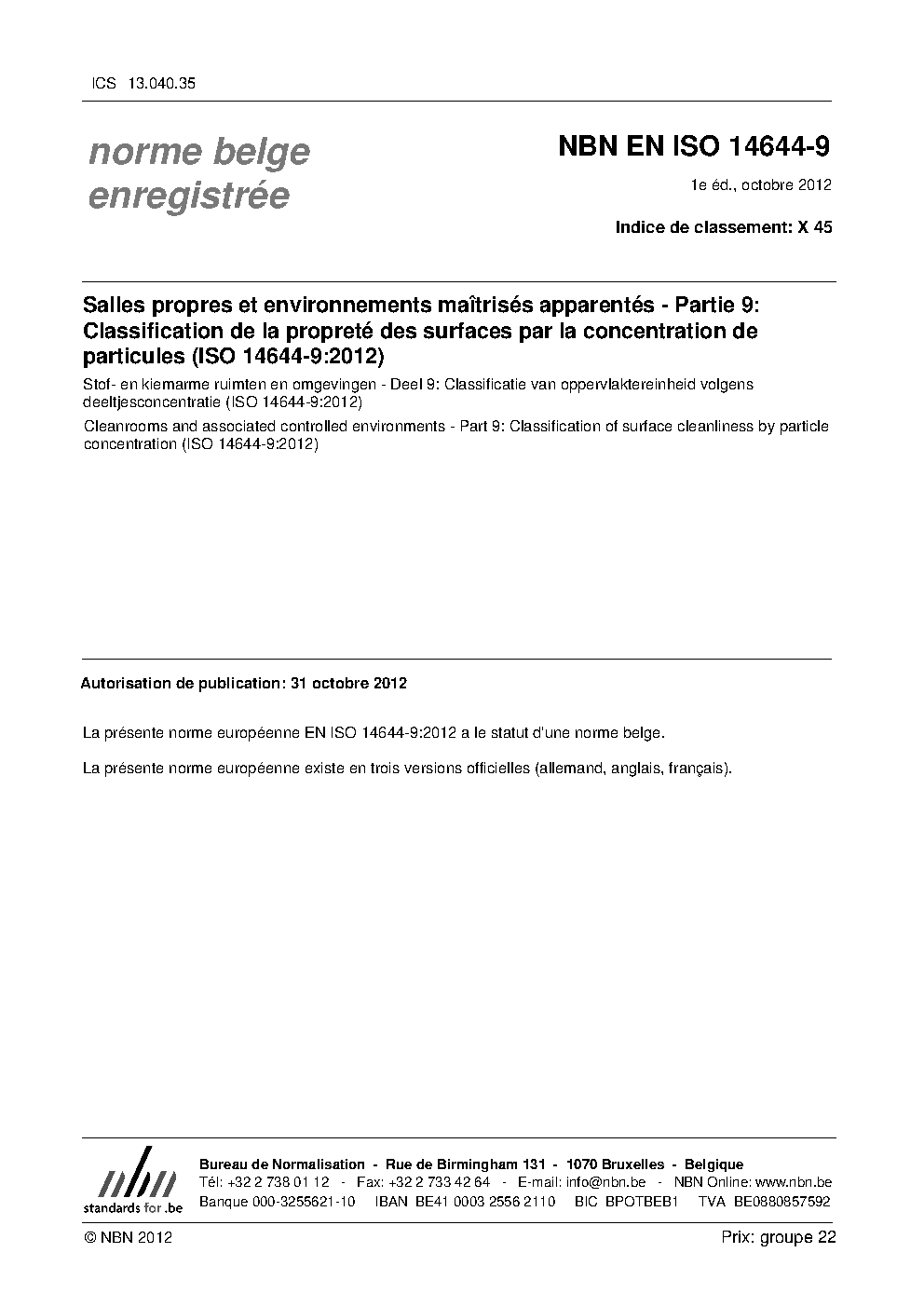 | Publisher | Bureau de Normalisation Belge (NBN) |