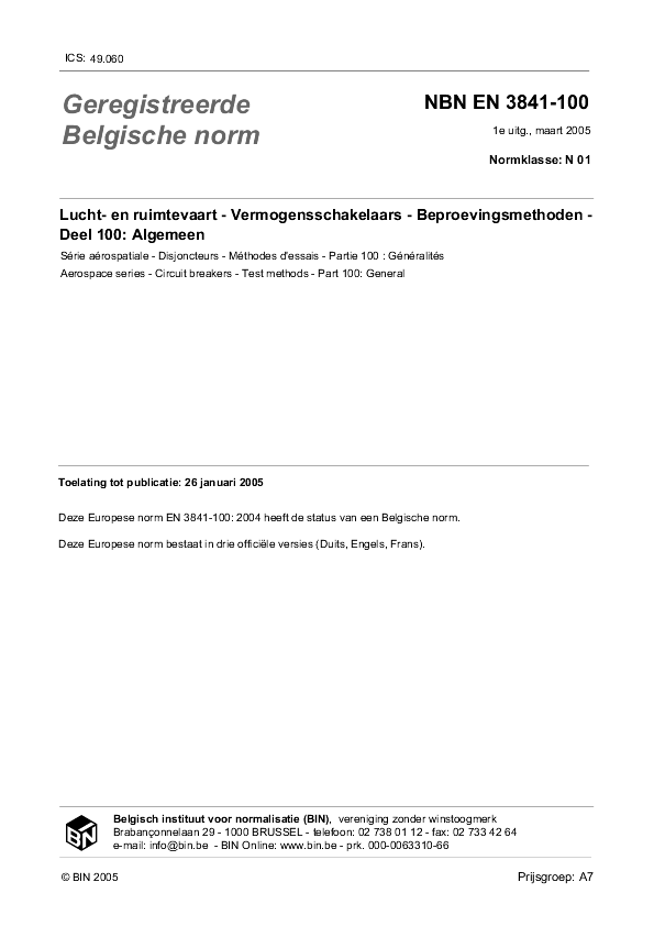 | Publisher | Bureau de Normalisation Belge (NBN) |