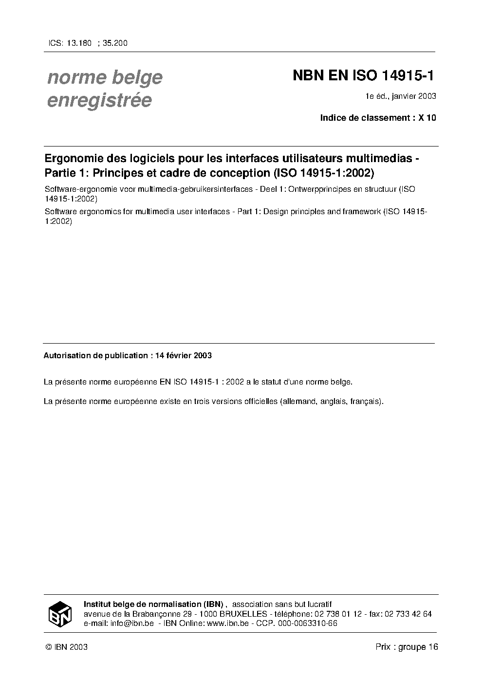 | Publisher | Bureau de Normalisation Belge (NBN) |