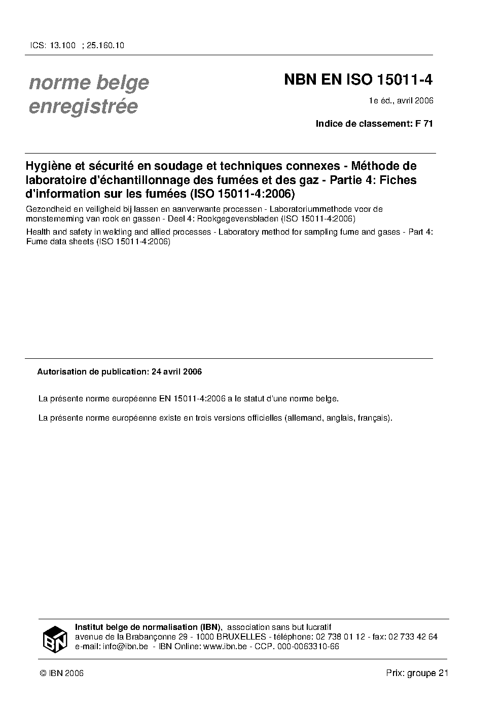 | Publisher | Bureau de Normalisation Belge (NBN) |