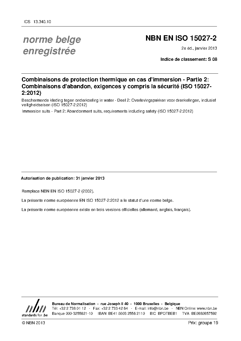 | Publisher | Bureau de Normalisation Belge (NBN) |