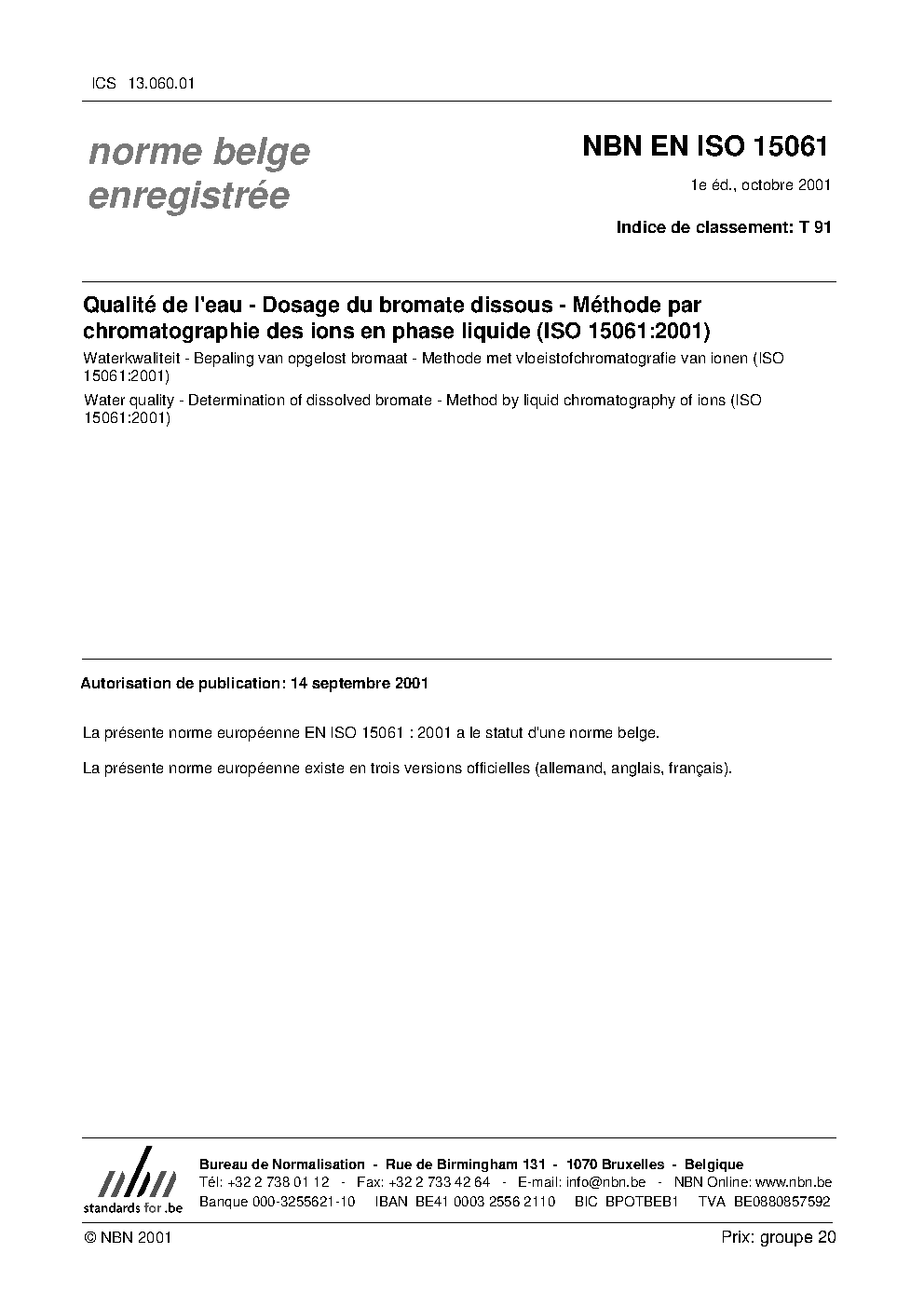 | Publisher | Bureau de Normalisation Belge (NBN) |