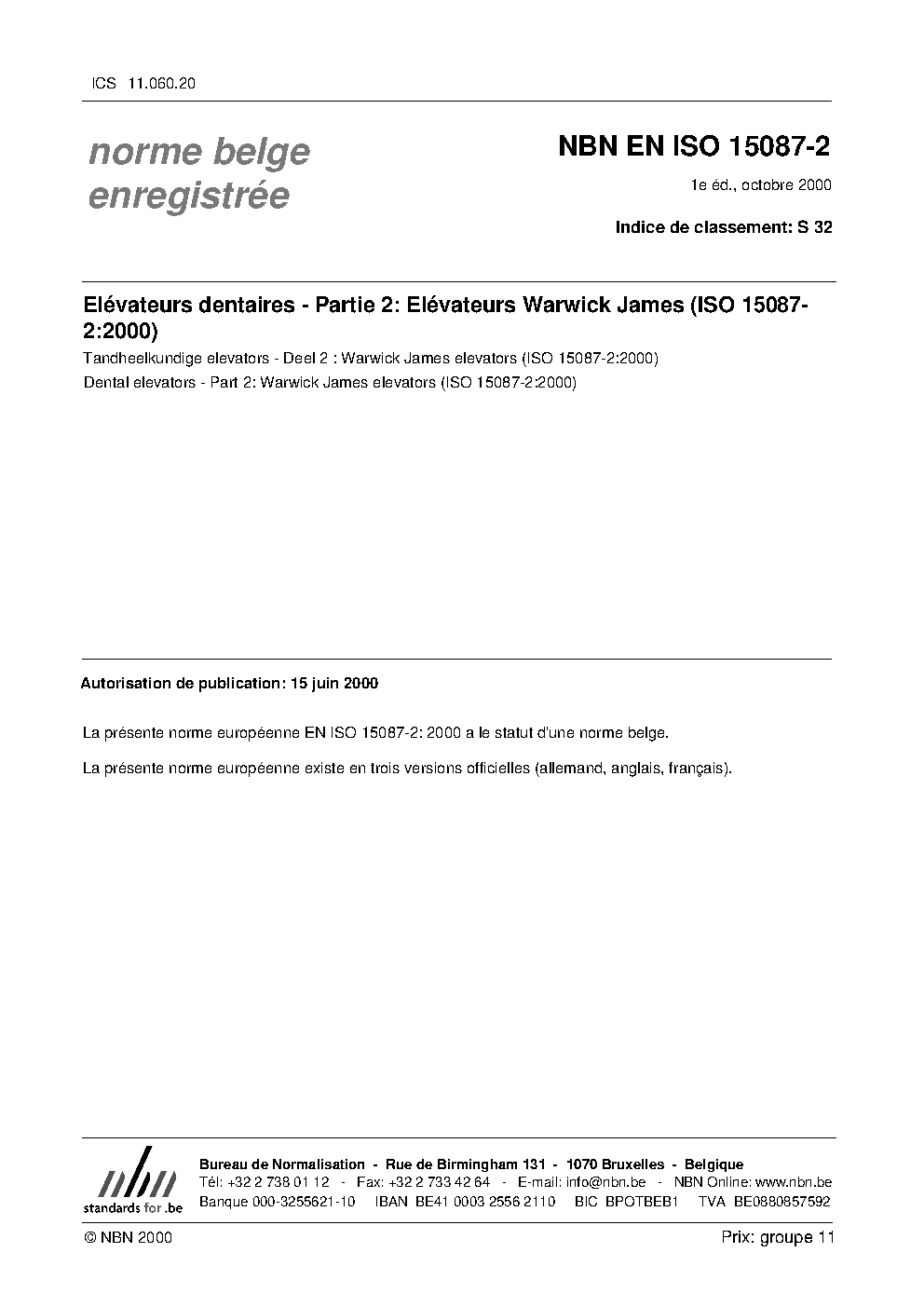 | Publisher | Bureau de Normalisation Belge (NBN) |