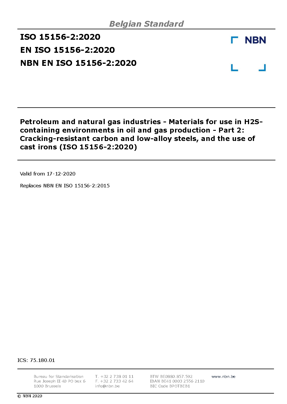 Petroleum and natural gas industries - Materials for use in H2S-containing environments in oil and gas production - Part 2: Cracking-resistant carbon and low-alloy steels, and the use of cast irons (ISO 15156-2:2009)