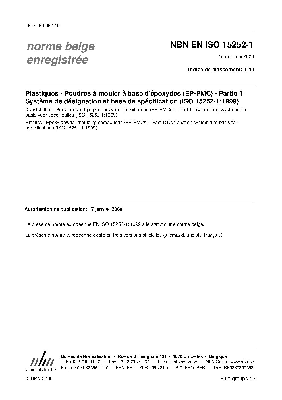 | Publisher | Bureau de Normalisation Belge (NBN) |