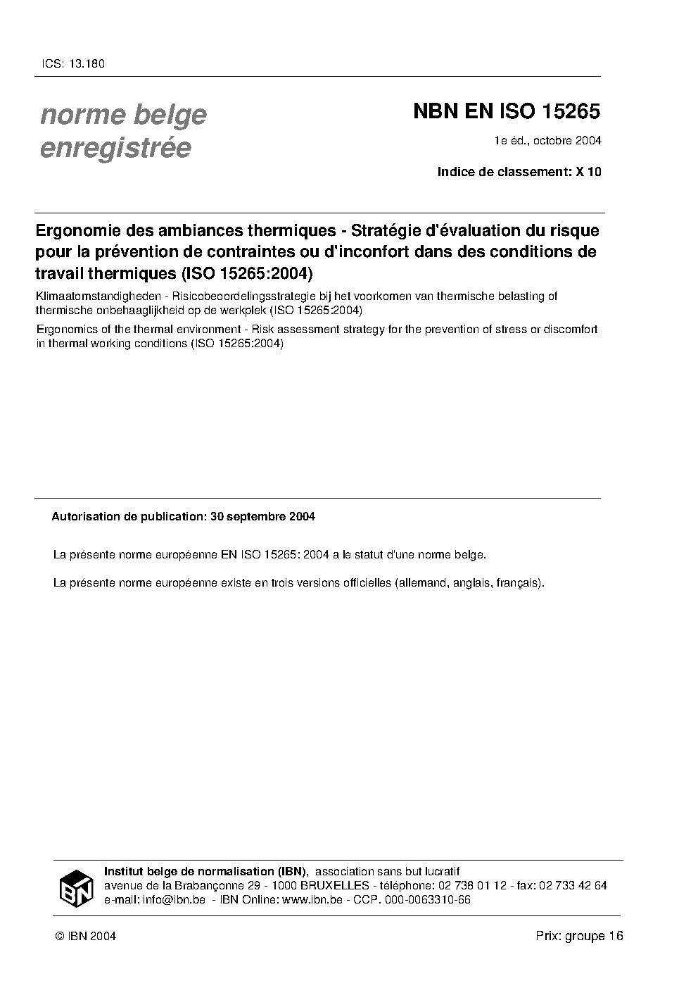 NBN EN ISO 15265:2004