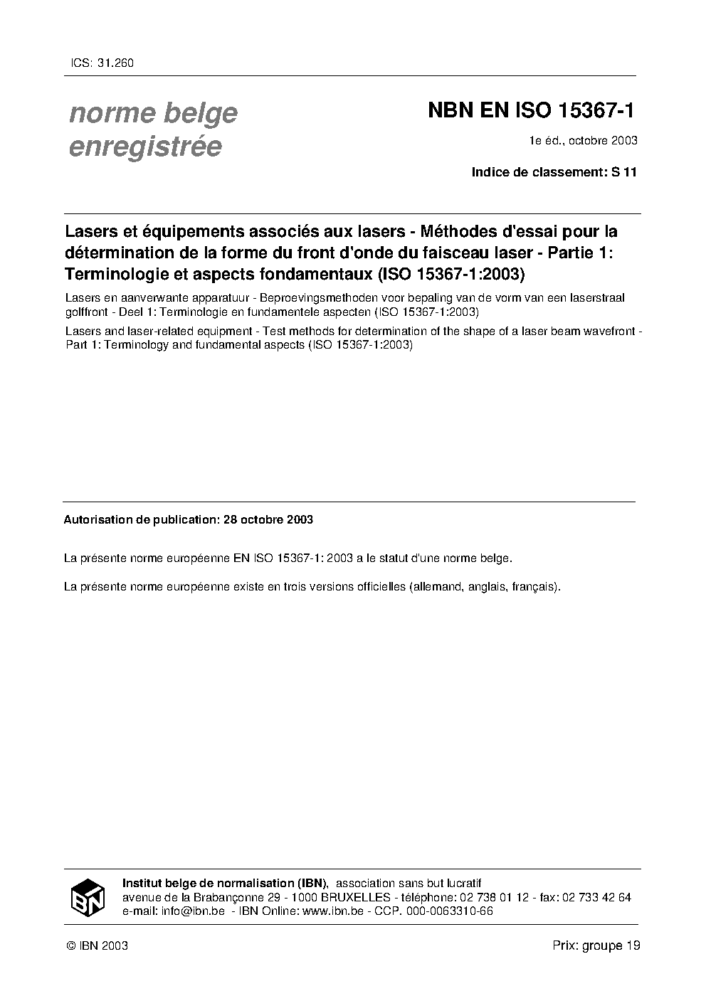 | Publisher | Bureau de Normalisation Belge (NBN) |