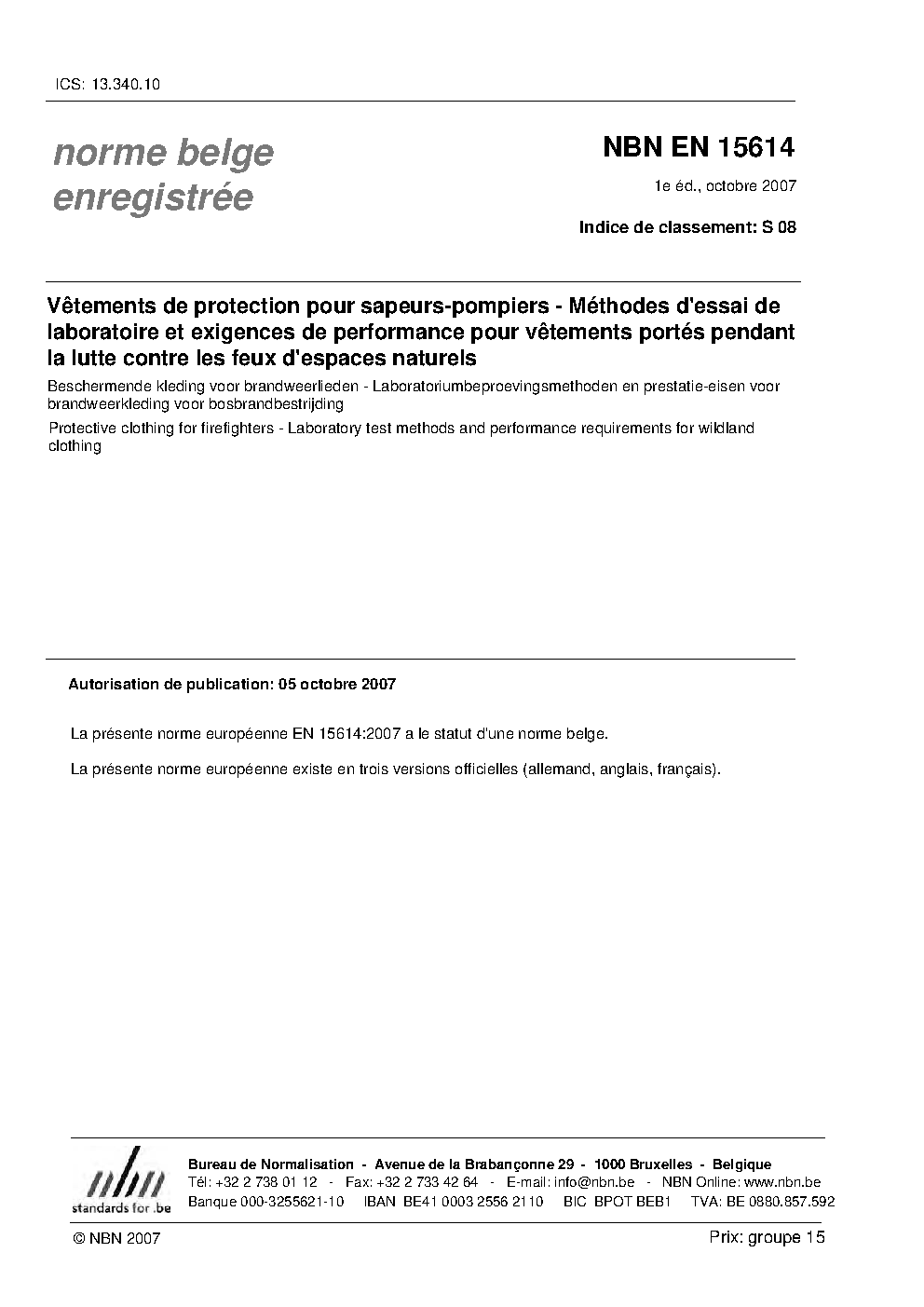 | Publisher | Bureau de Normalisation Belge (NBN) |