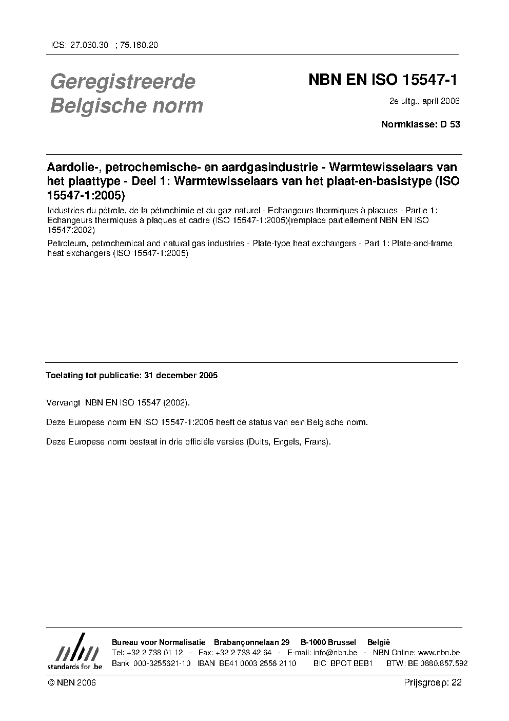 | Publisher | Bureau de Normalisation Belge (NBN) |