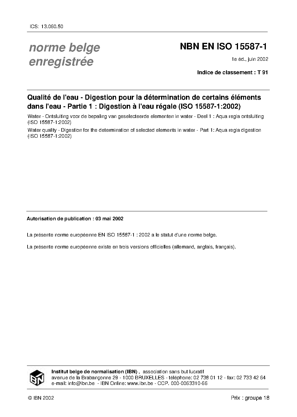 | Publisher | Bureau de Normalisation Belge (NBN) |