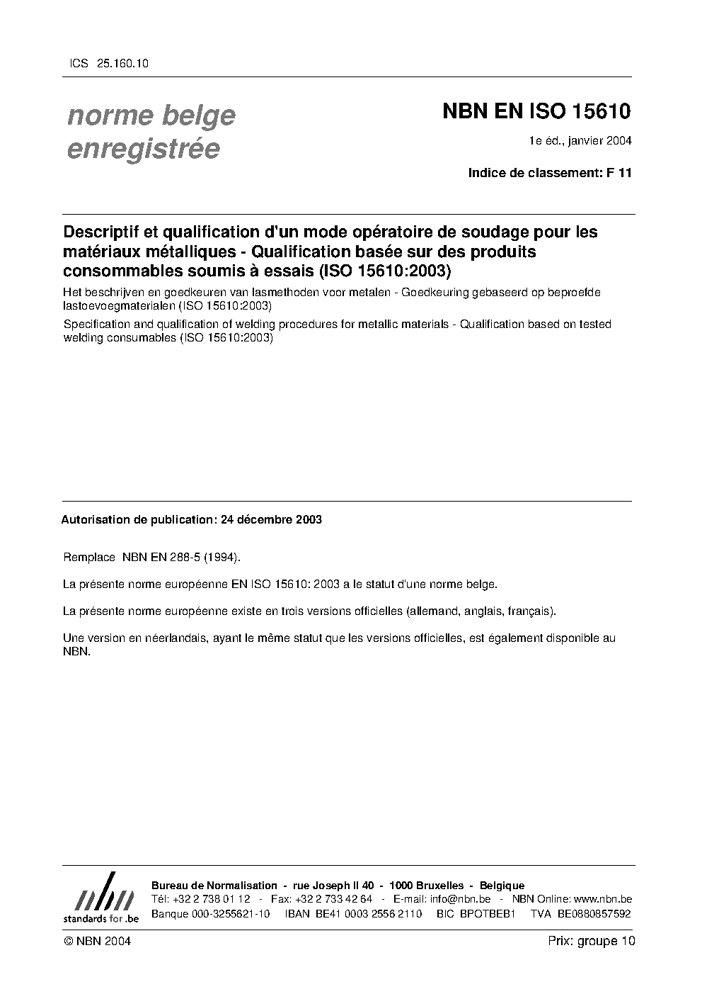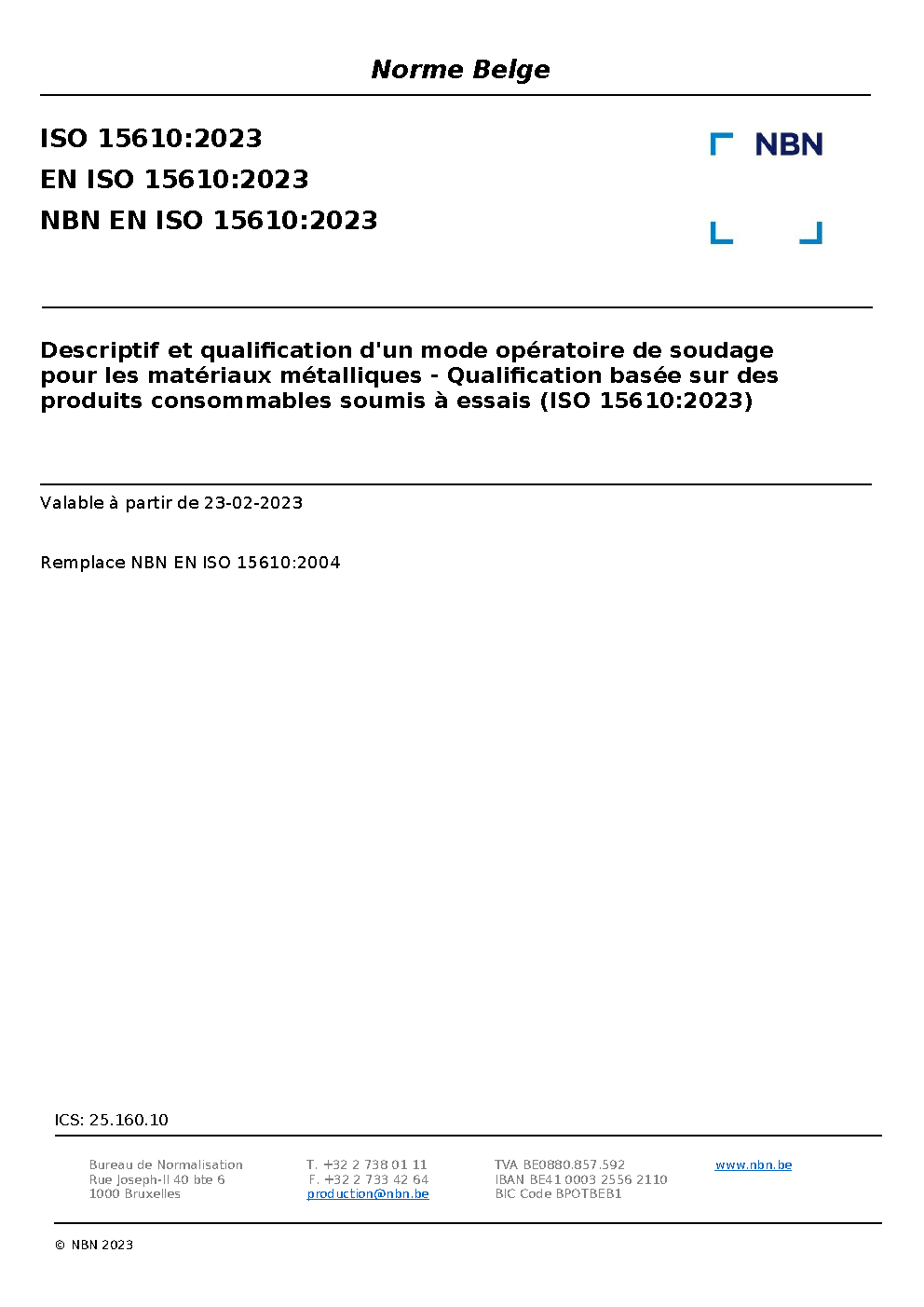 | Publisher | Bureau de Normalisation Belge (NBN) |