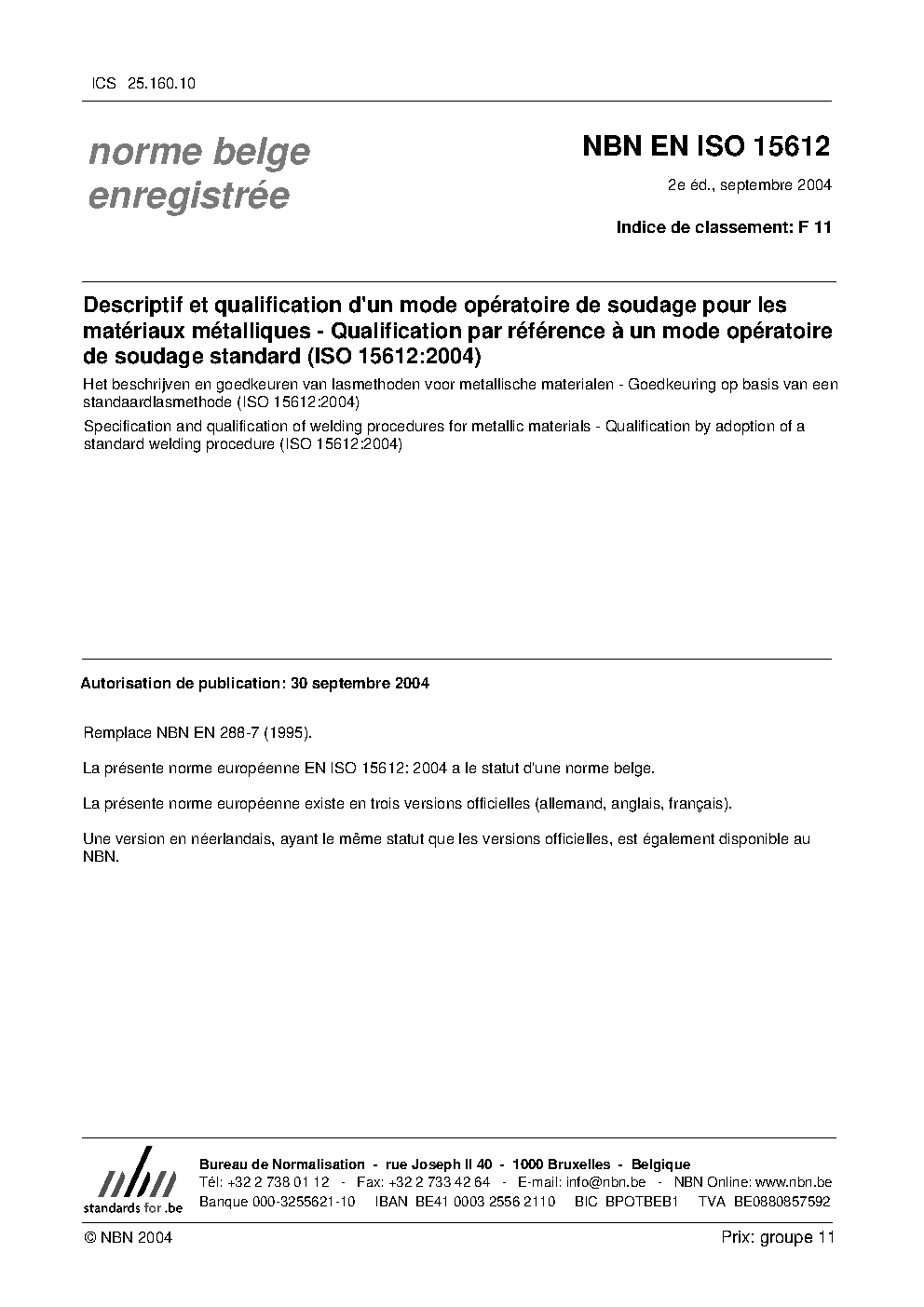 | Publisher | Bureau de Normalisation Belge (NBN) |