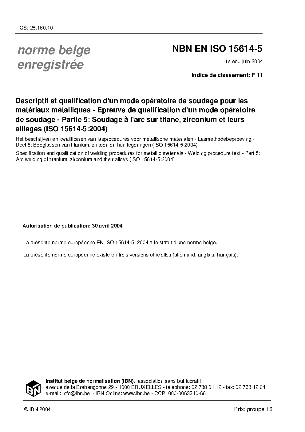 | Publisher | Bureau de Normalisation Belge (NBN) |