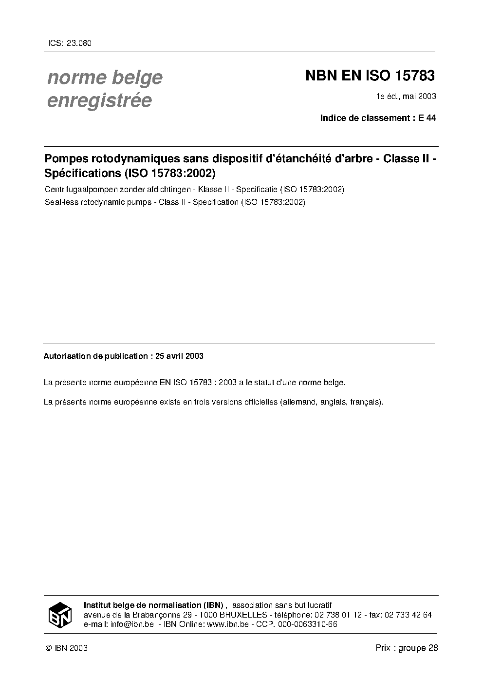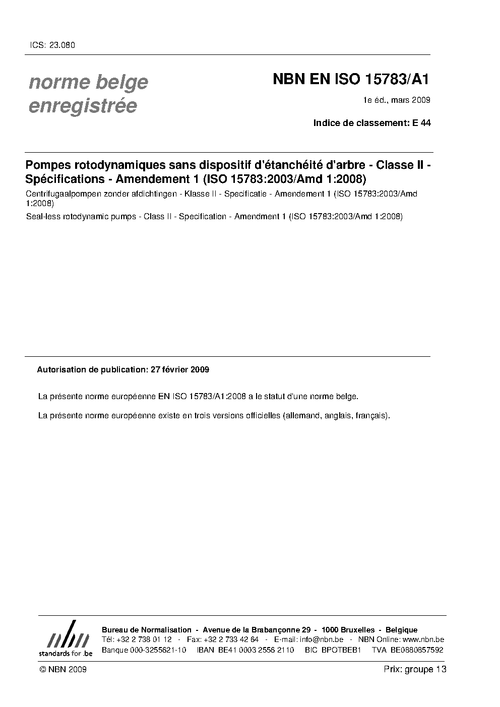| Publisher | Bureau de Normalisation Belge (NBN) |
