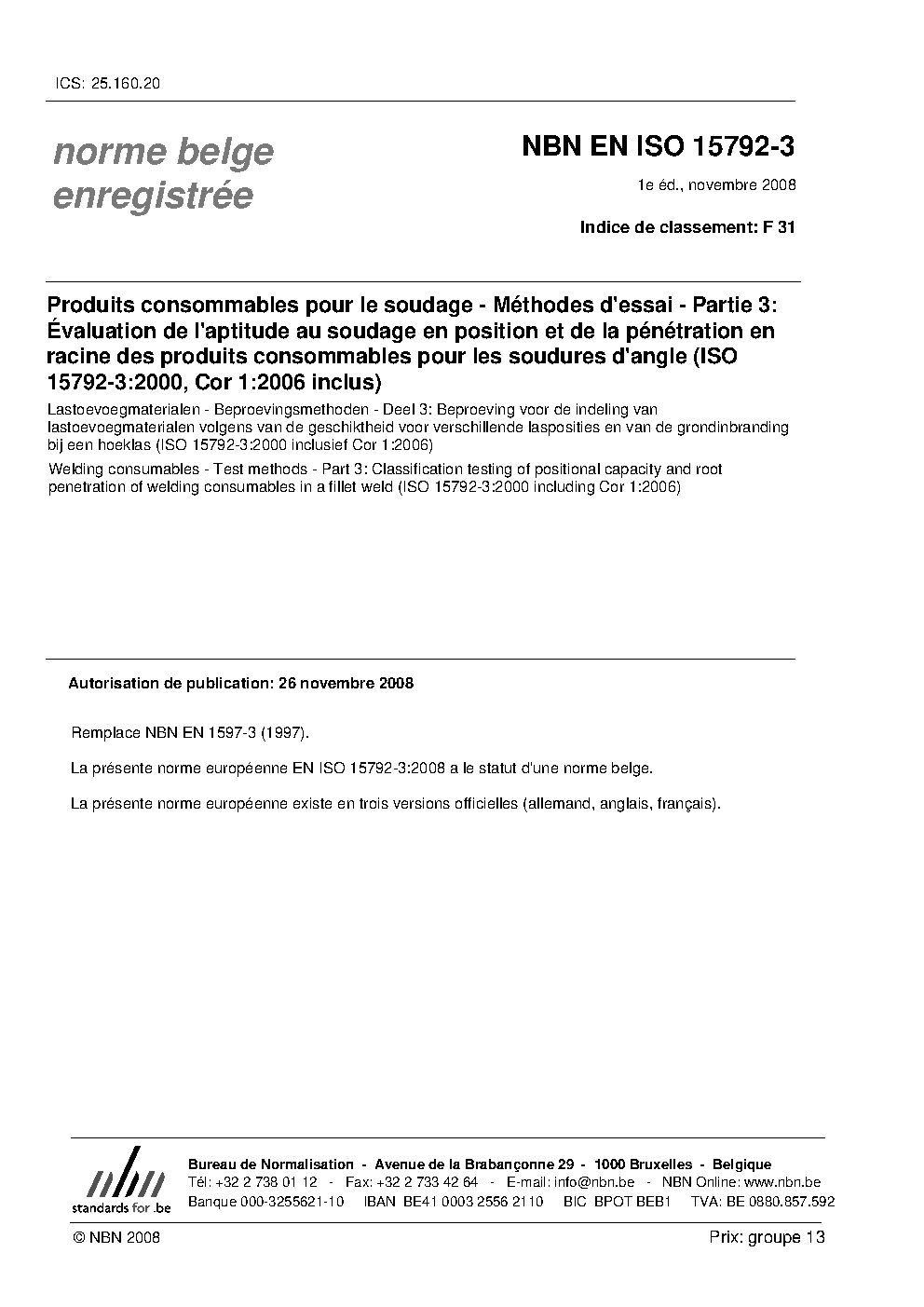 | Publisher | Bureau de Normalisation Belge (NBN) |