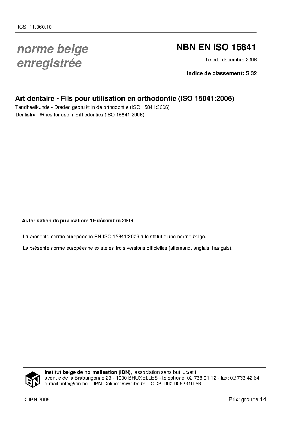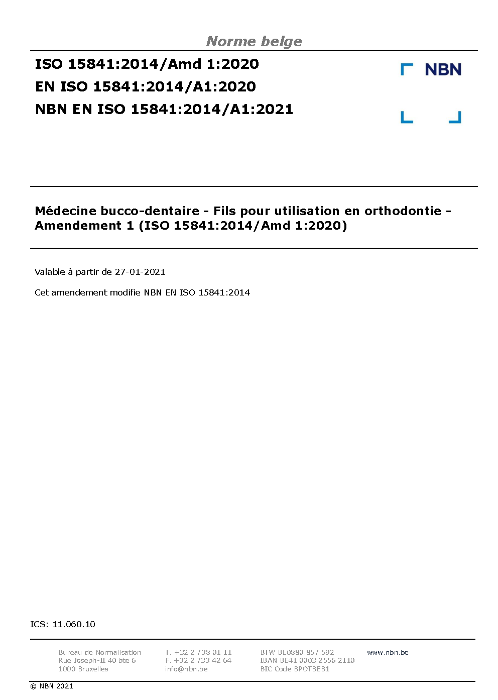| Publisher | Bureau de Normalisation Belge (NBN) |