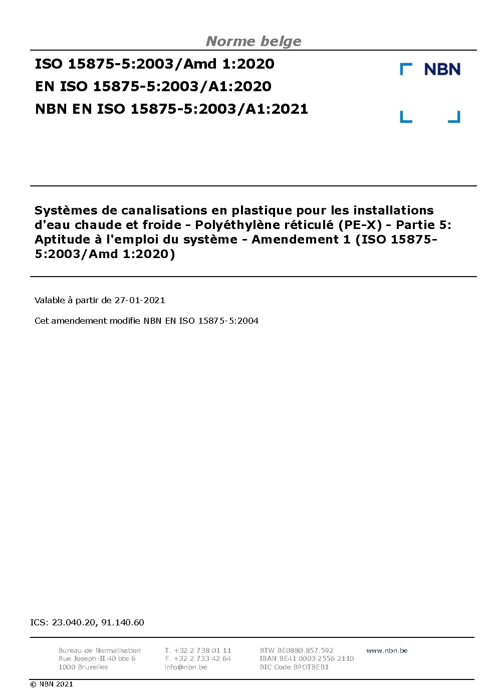 | Publisher | Bureau de Normalisation Belge (NBN) |