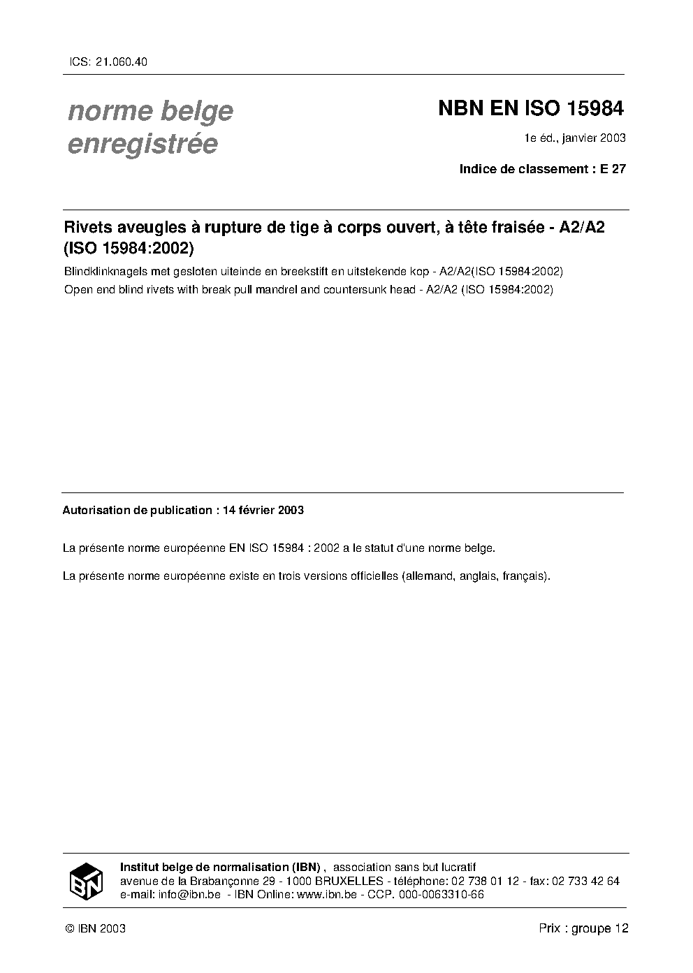 | Publisher | Bureau de Normalisation Belge (NBN) |