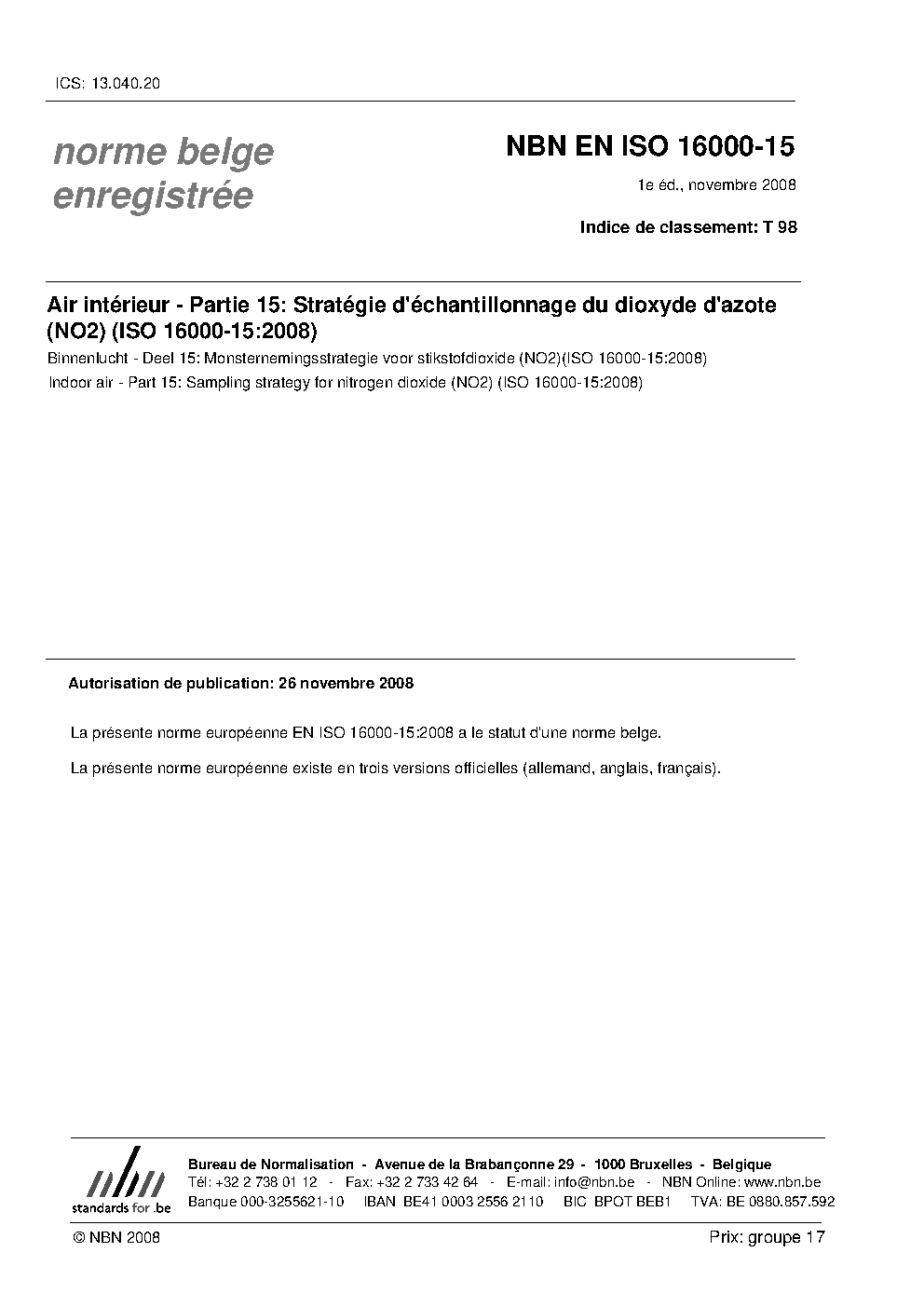 | Publisher | Bureau de Normalisation Belge (NBN) |