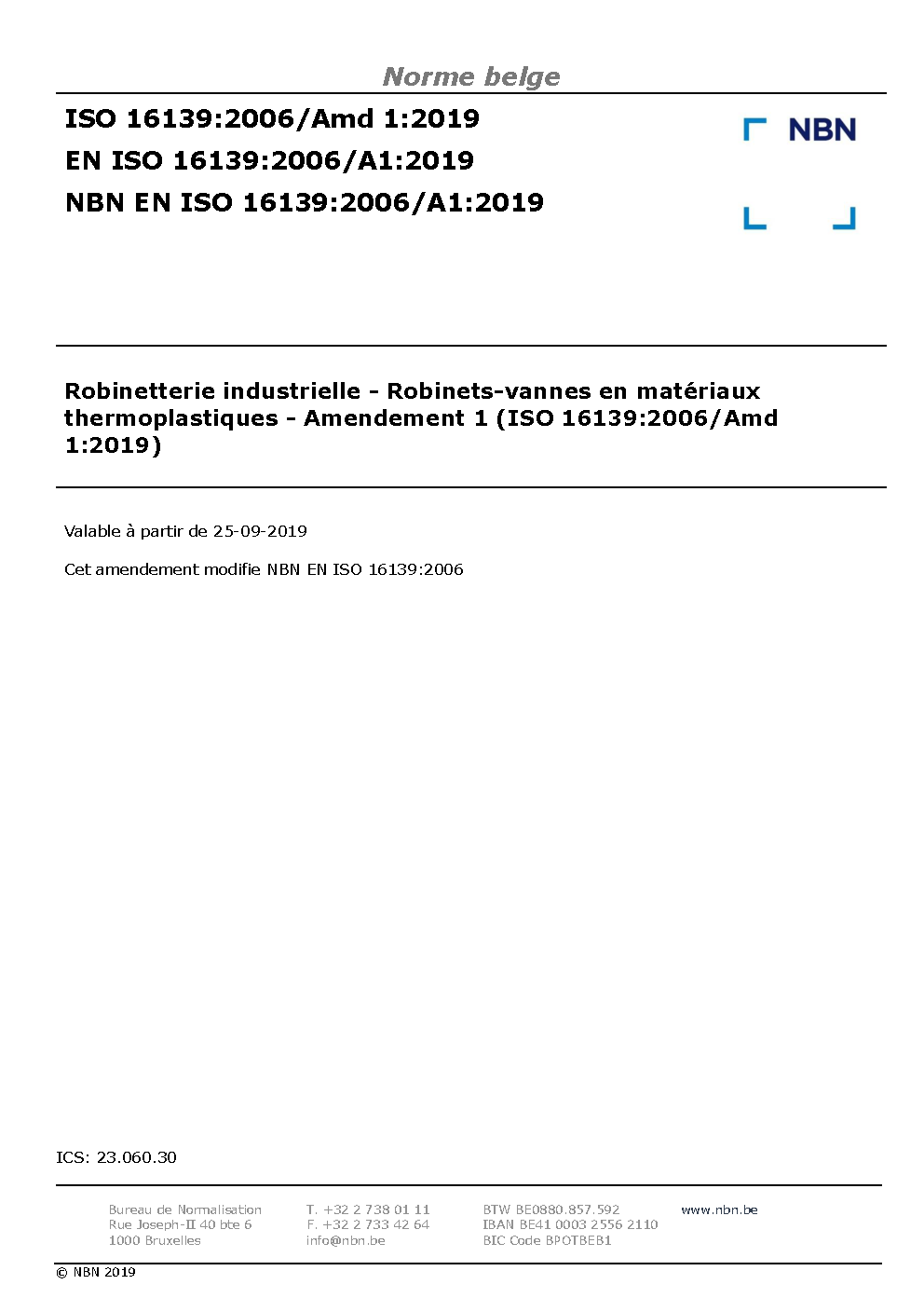 Industrial valves - Gate valves of thermoplastics materials - Amendment 1 (ISO 16139:2006/Amd 1:2019)
