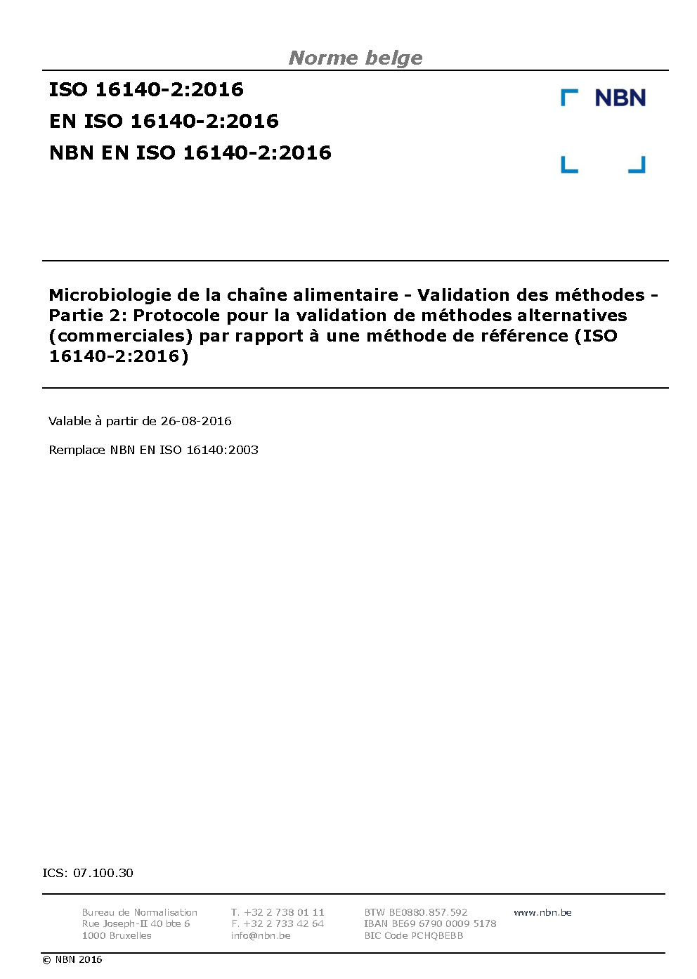| Publisher | Bureau de Normalisation Belge (NBN) |