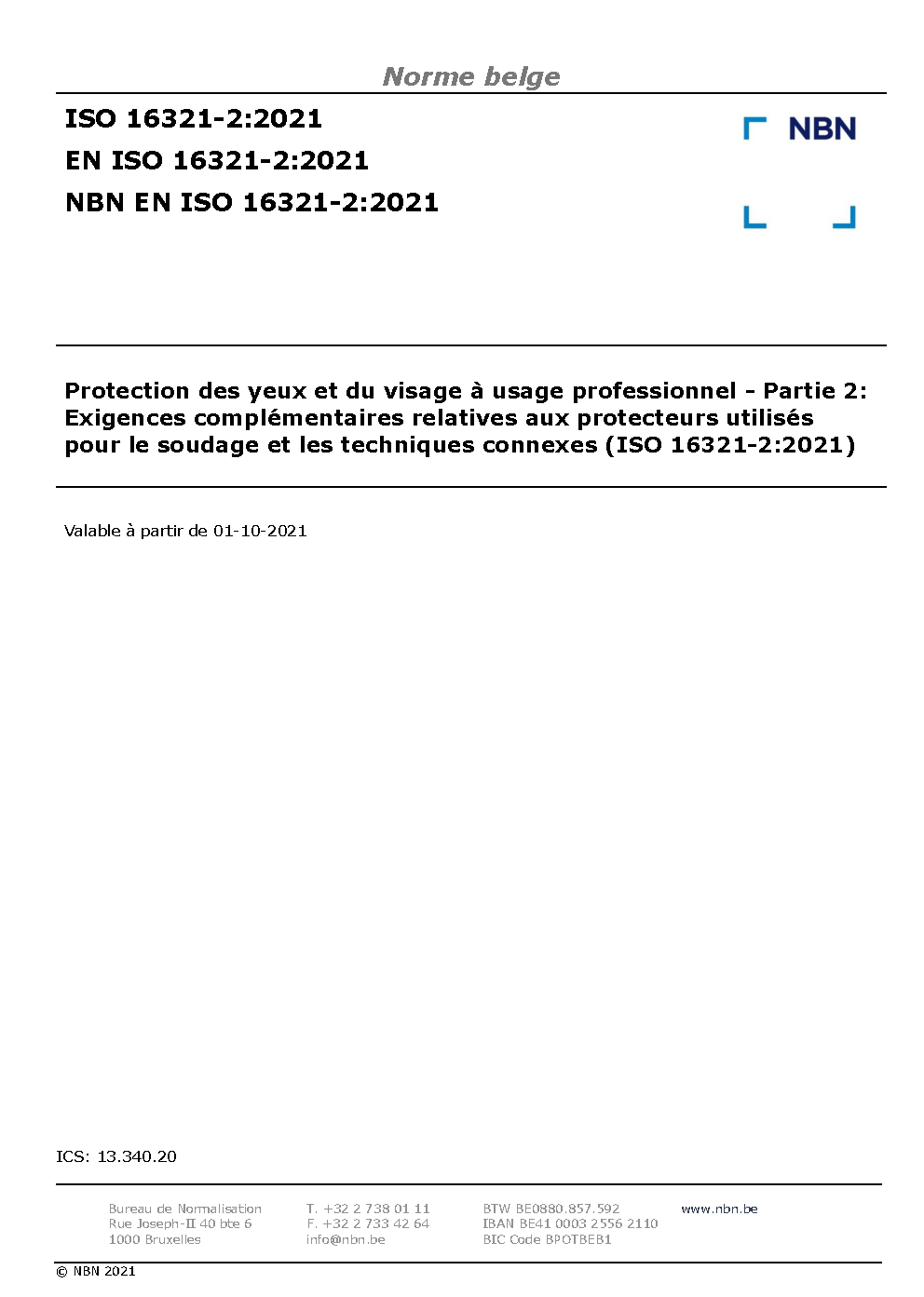 Eye and face protection for occupational use - Part 2: Additional requirements for protectors used during welding and related techniques (ISO 16321-2:2021)