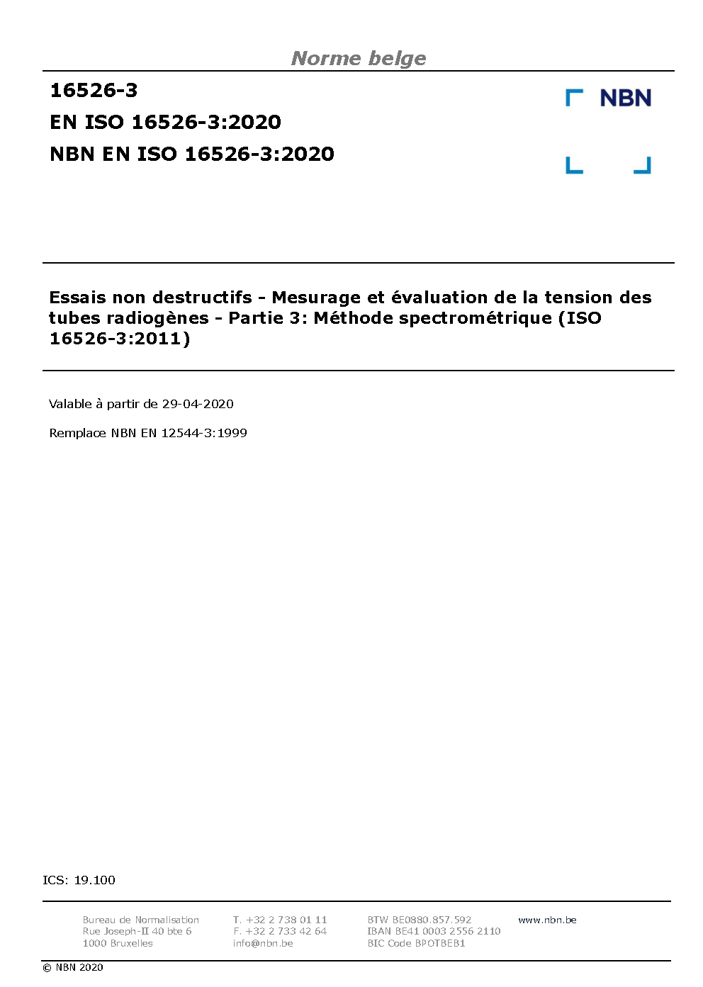 | Publisher | Bureau de Normalisation Belge (NBN) |
