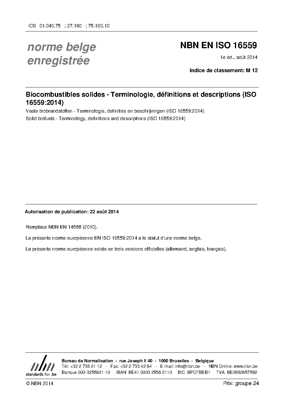| Publisher | Bureau de Normalisation Belge (NBN) |
