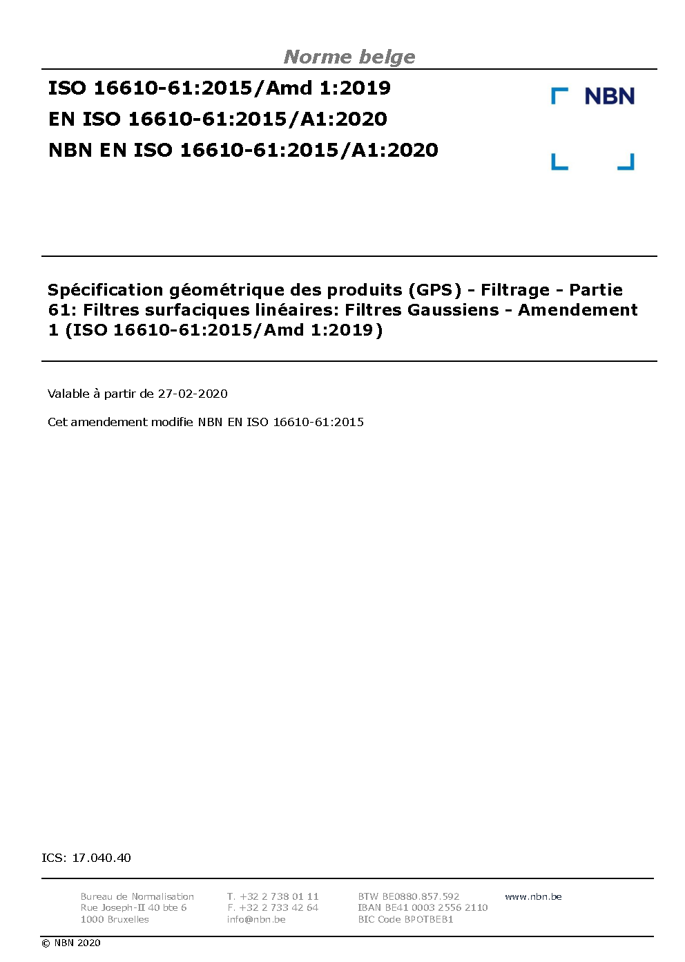 | Publisher | Bureau de Normalisation Belge (NBN) |