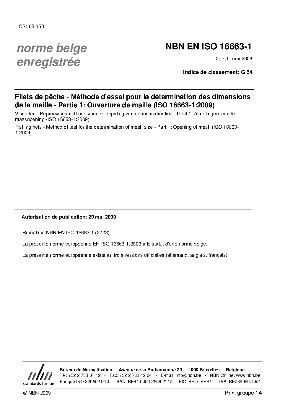 | Publisher | Bureau de Normalisation Belge (NBN) |