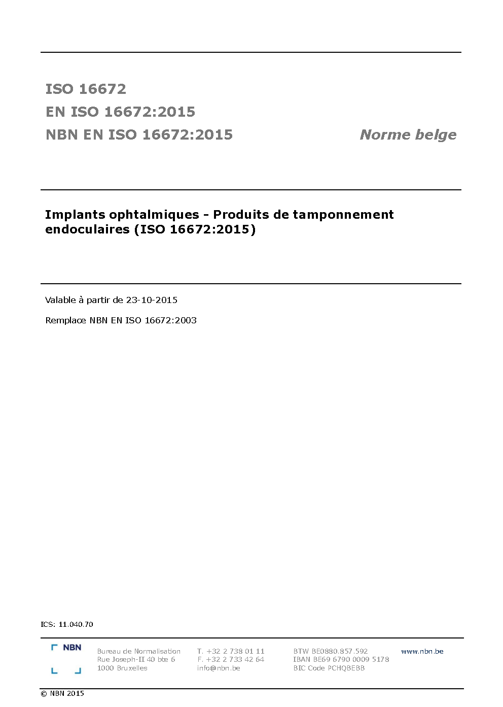 Implants ophtalmiques - Produits de tamponnement endoculaires (ISO 16672:2015)