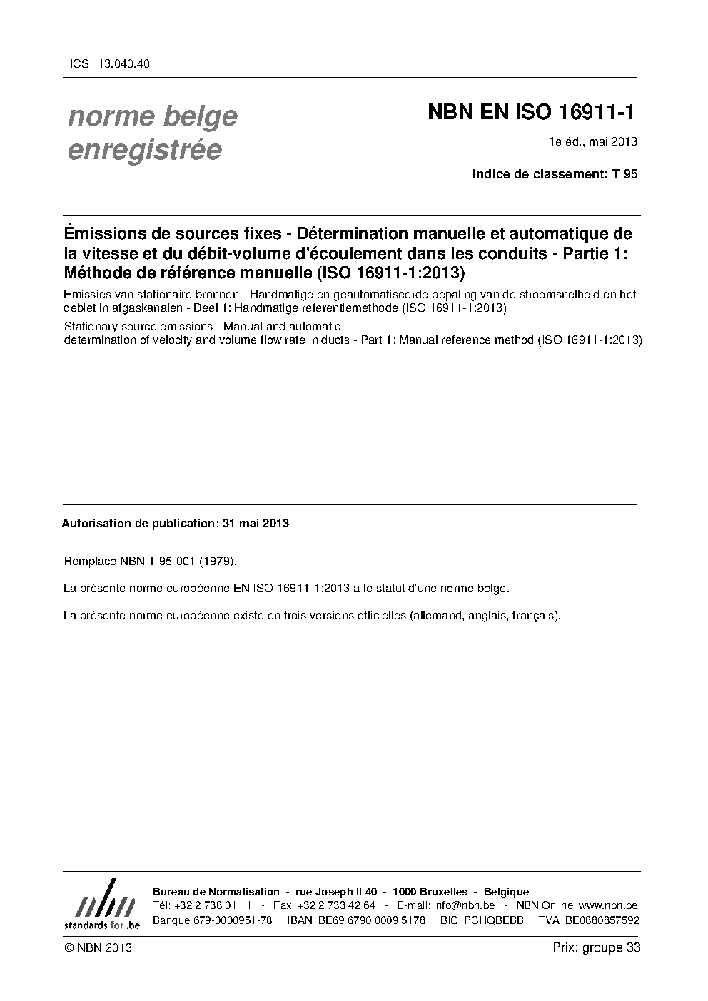 | Publisher | Bureau de Normalisation Belge (NBN) |