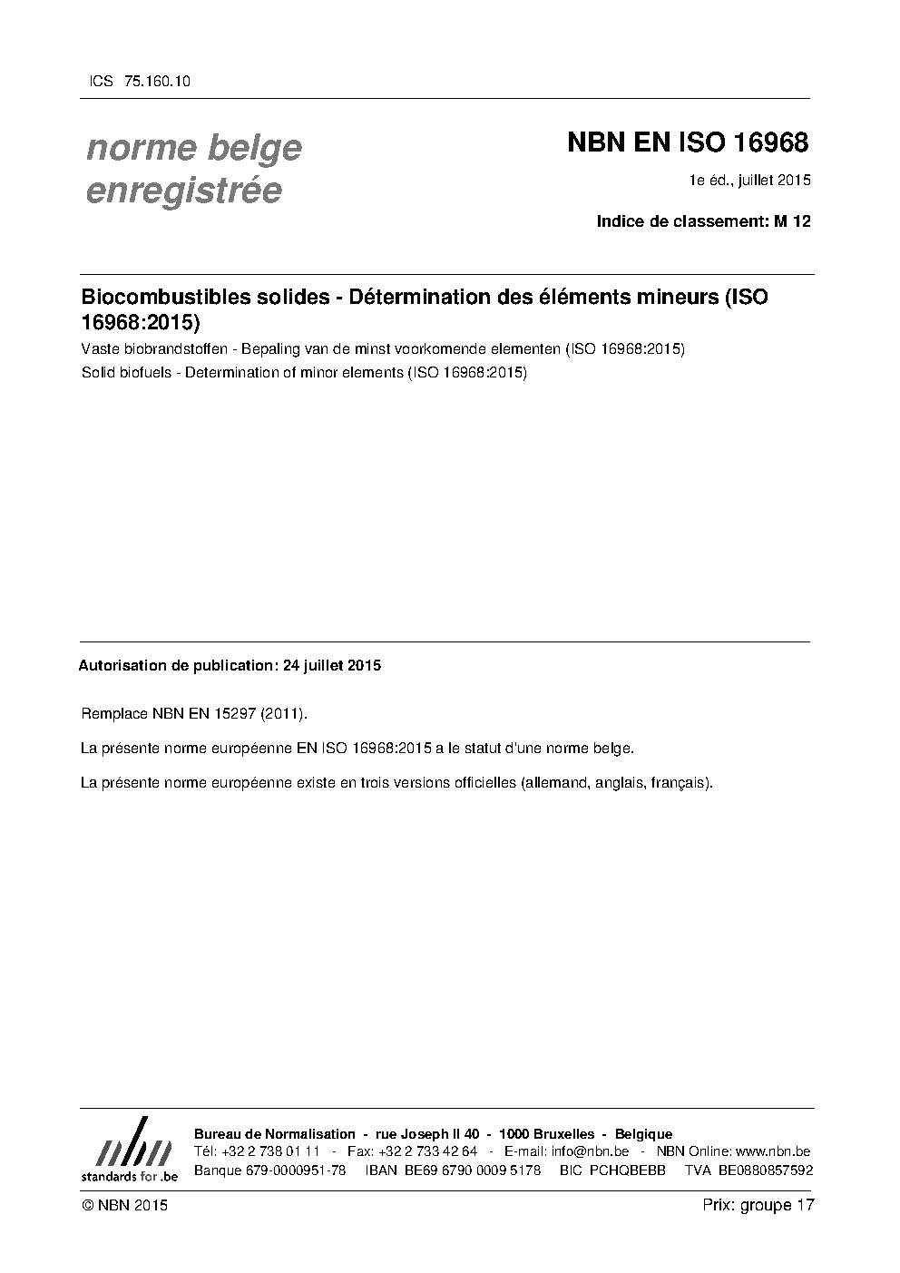 | Publisher | Bureau de Normalisation Belge (NBN) |