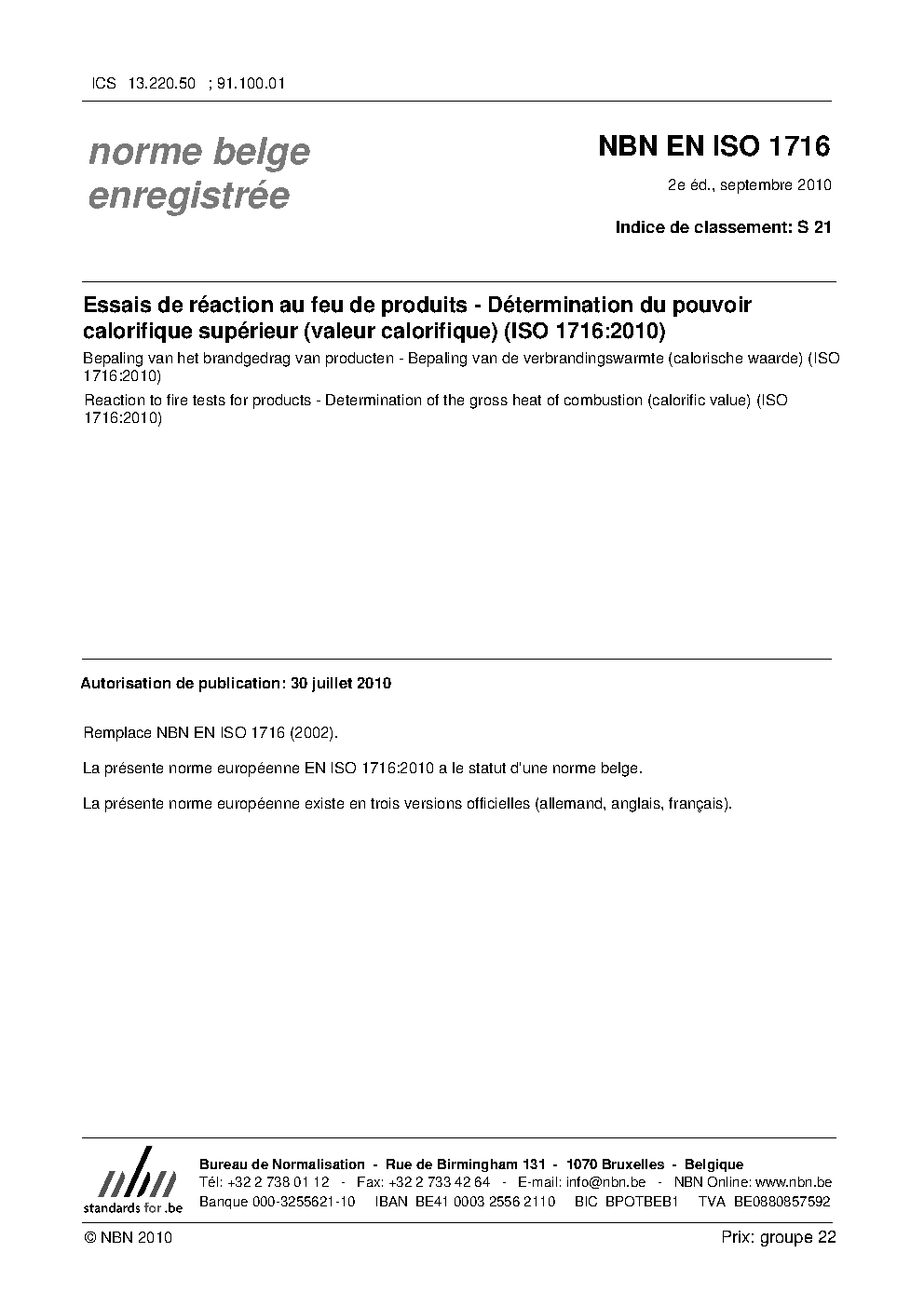 | Publisher | Bureau de Normalisation Belge (NBN) |