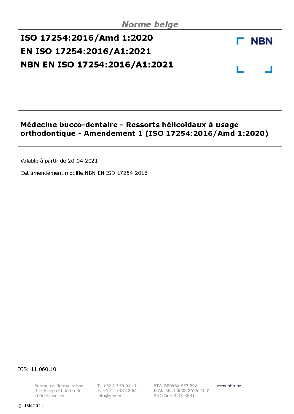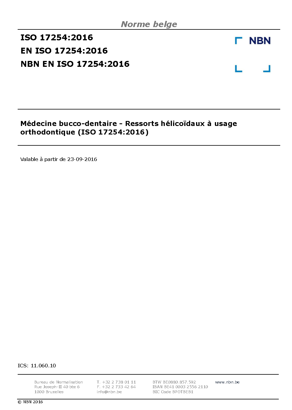 Dentistry - Coiled springs for use in orthodontics (ISO 17254:2016)