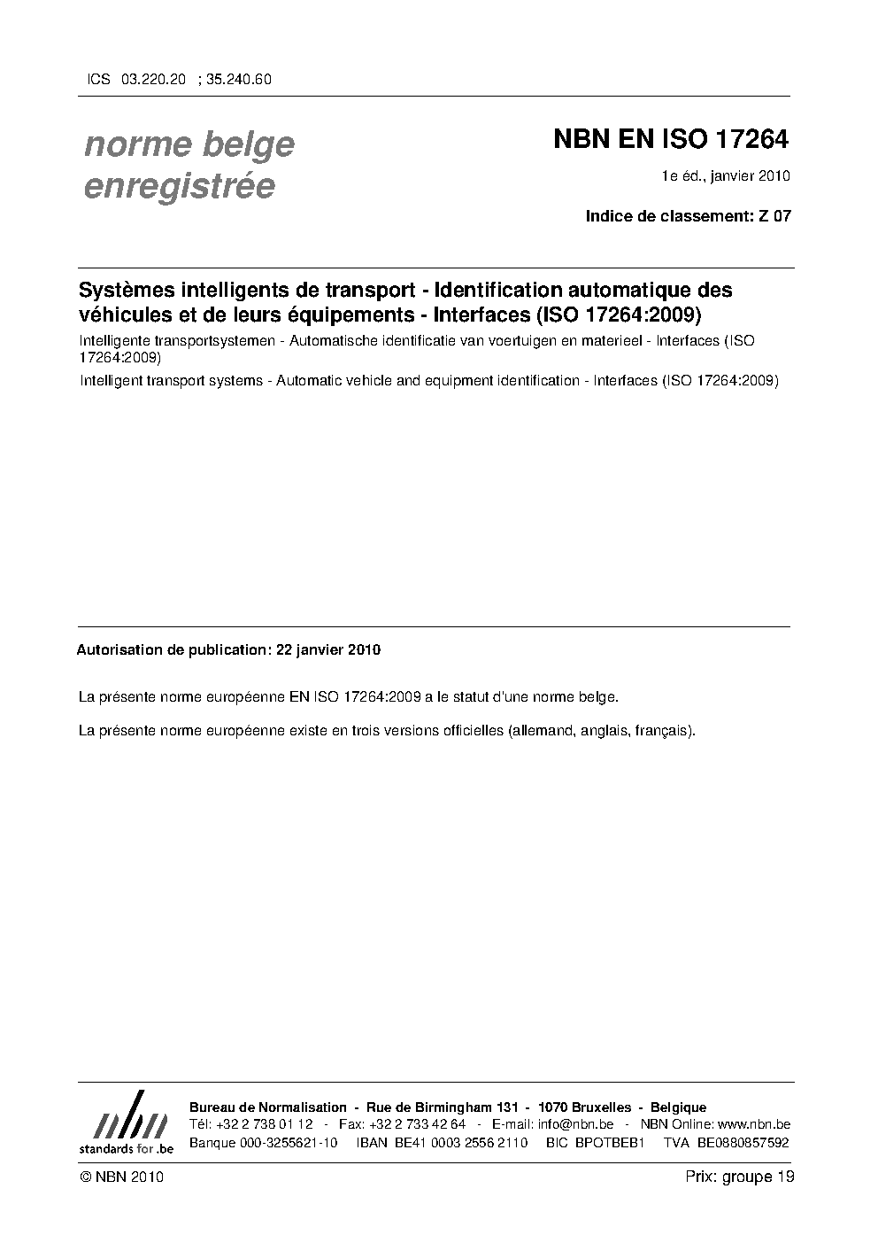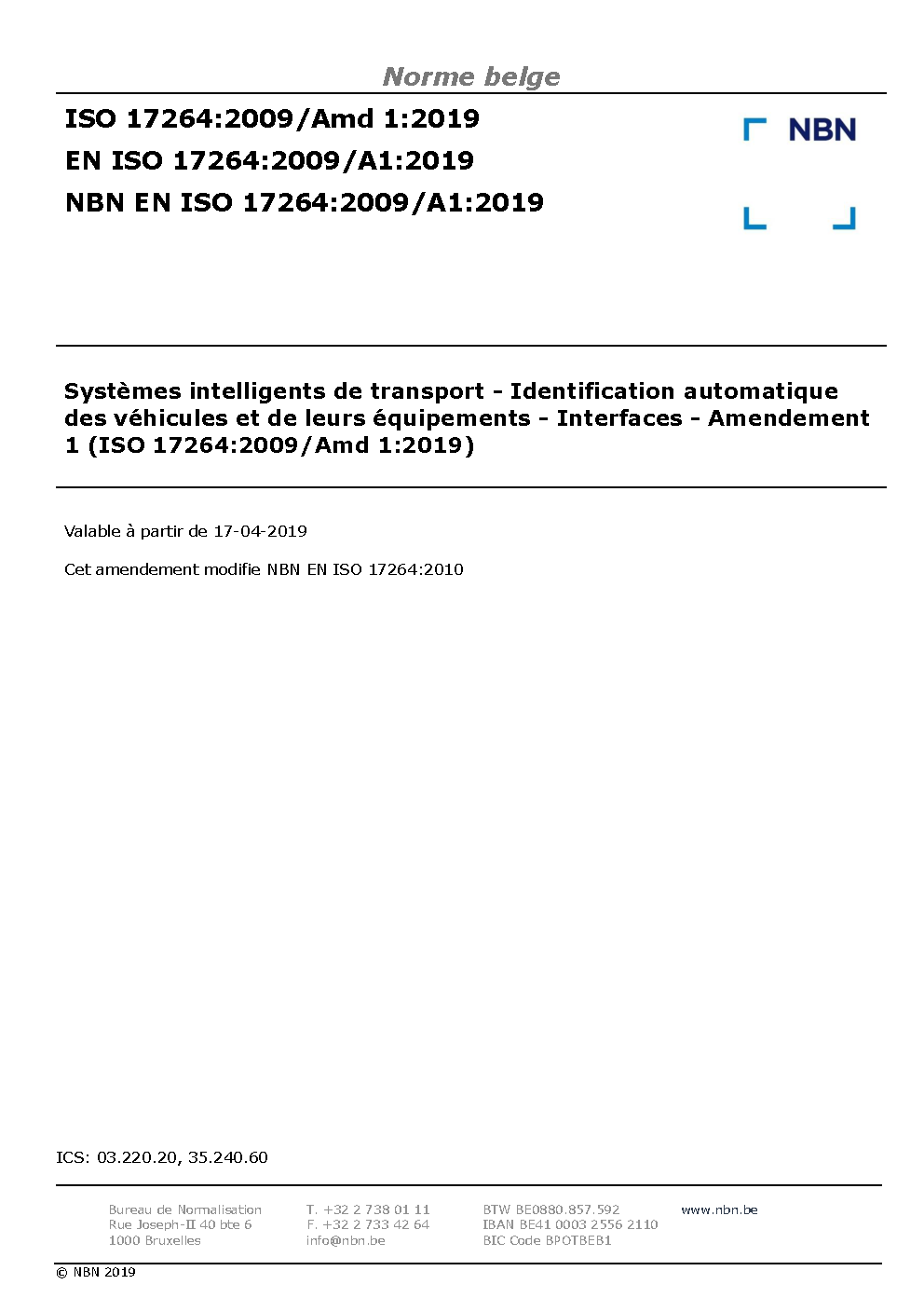 | Publisher | Bureau de Normalisation Belge (NBN) |